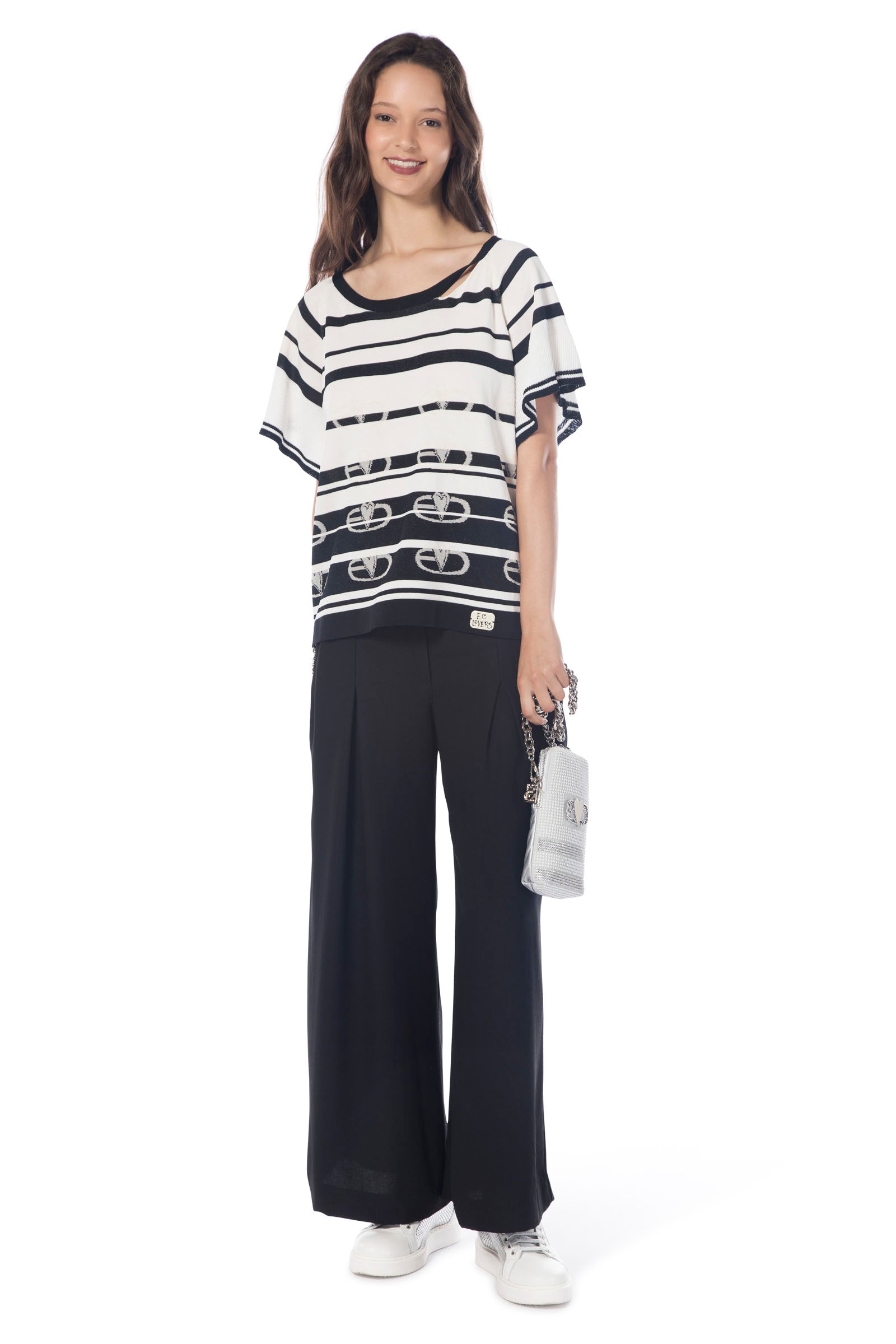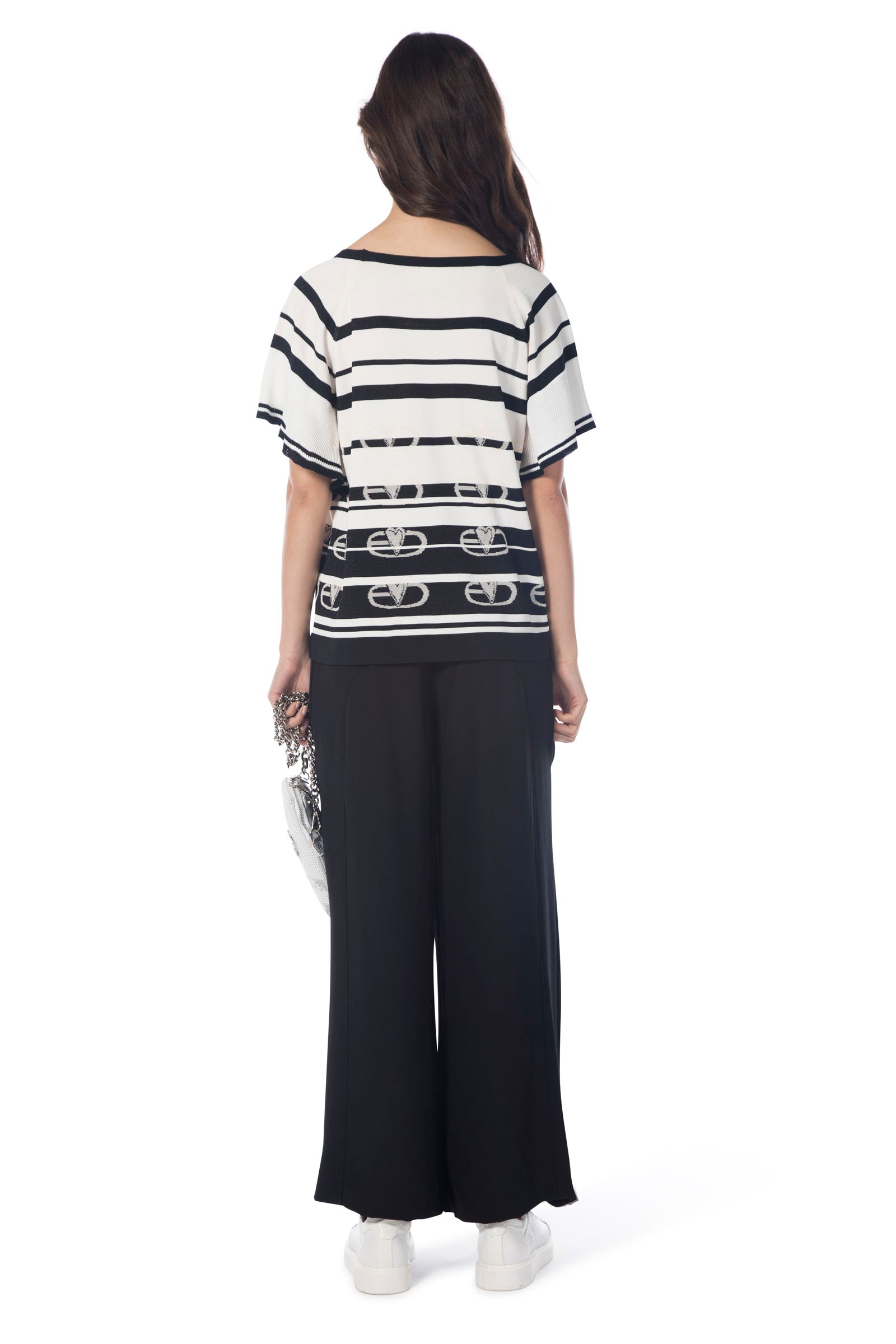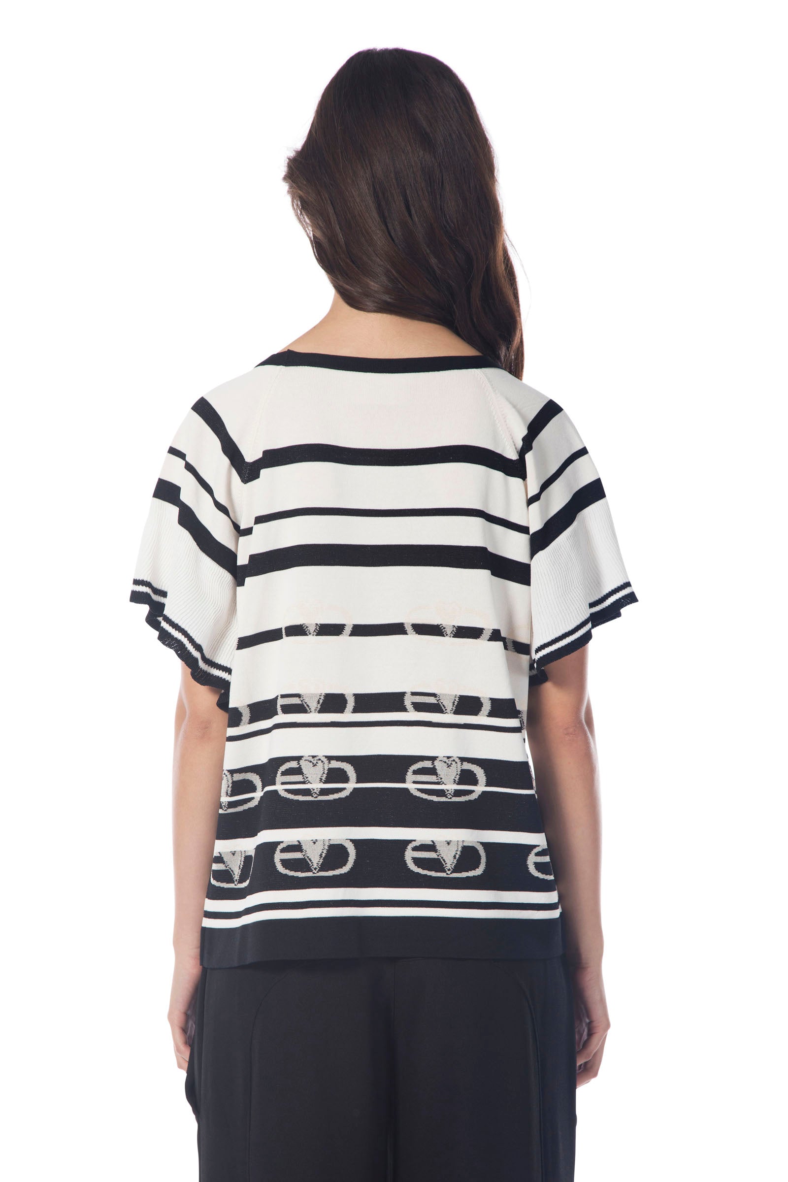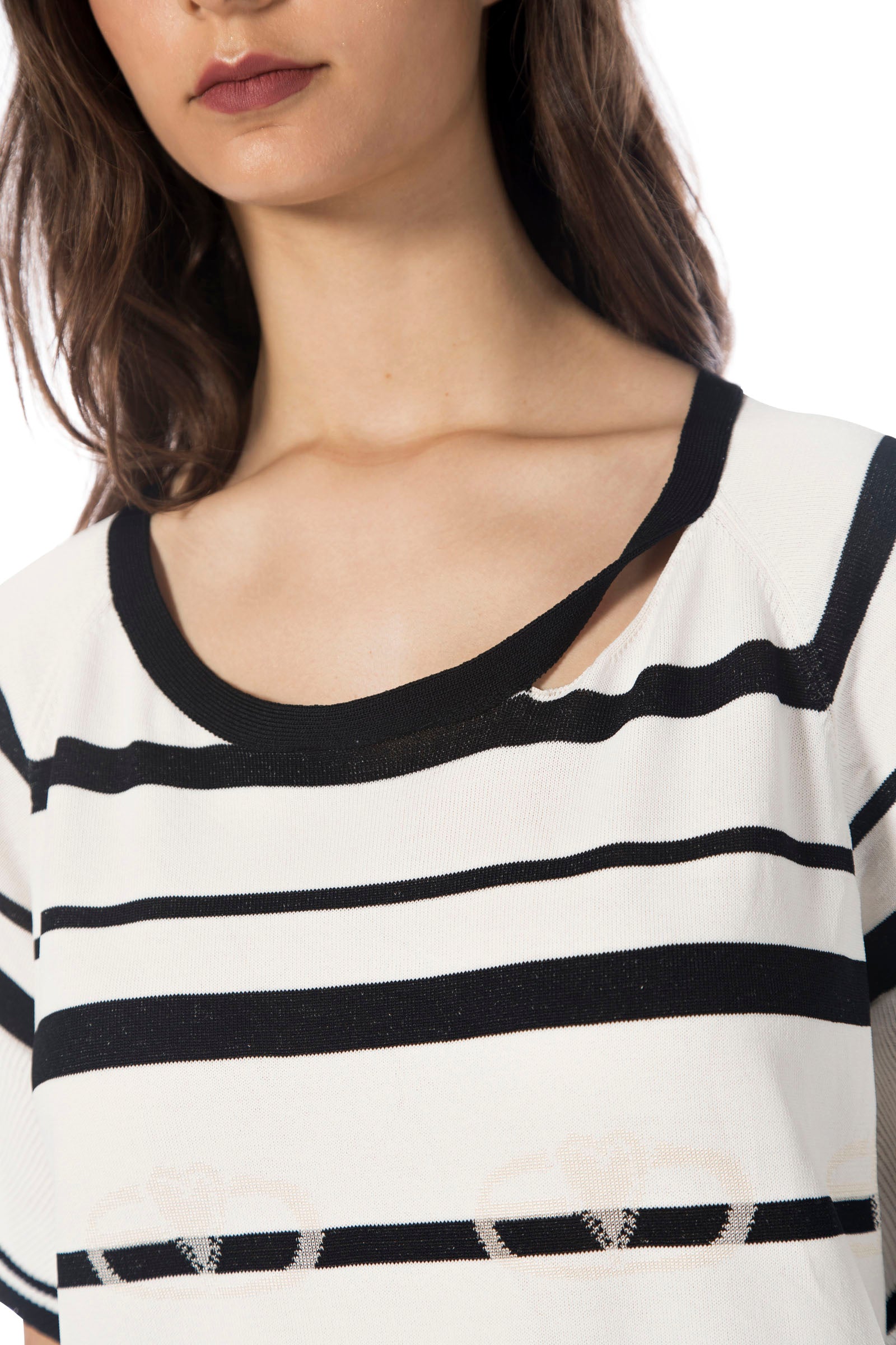 Unleash your style with the stylish ELISA CAVALETTI knit shirt! This striped short-sleeved shirt is available in two different colors and will give you a trendy look. Perfect for any occasion, it can be combined with various outfits. Get your new favorite shirt now!