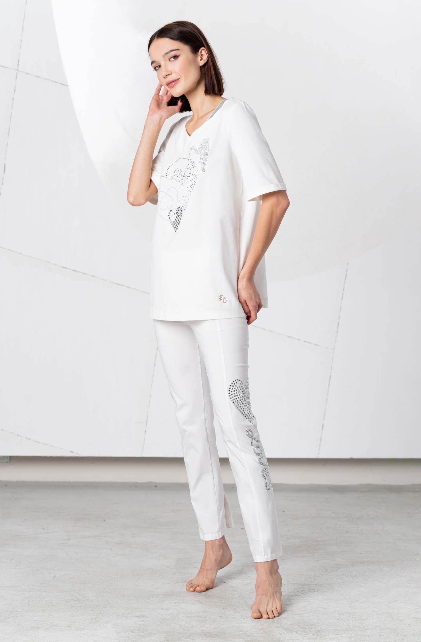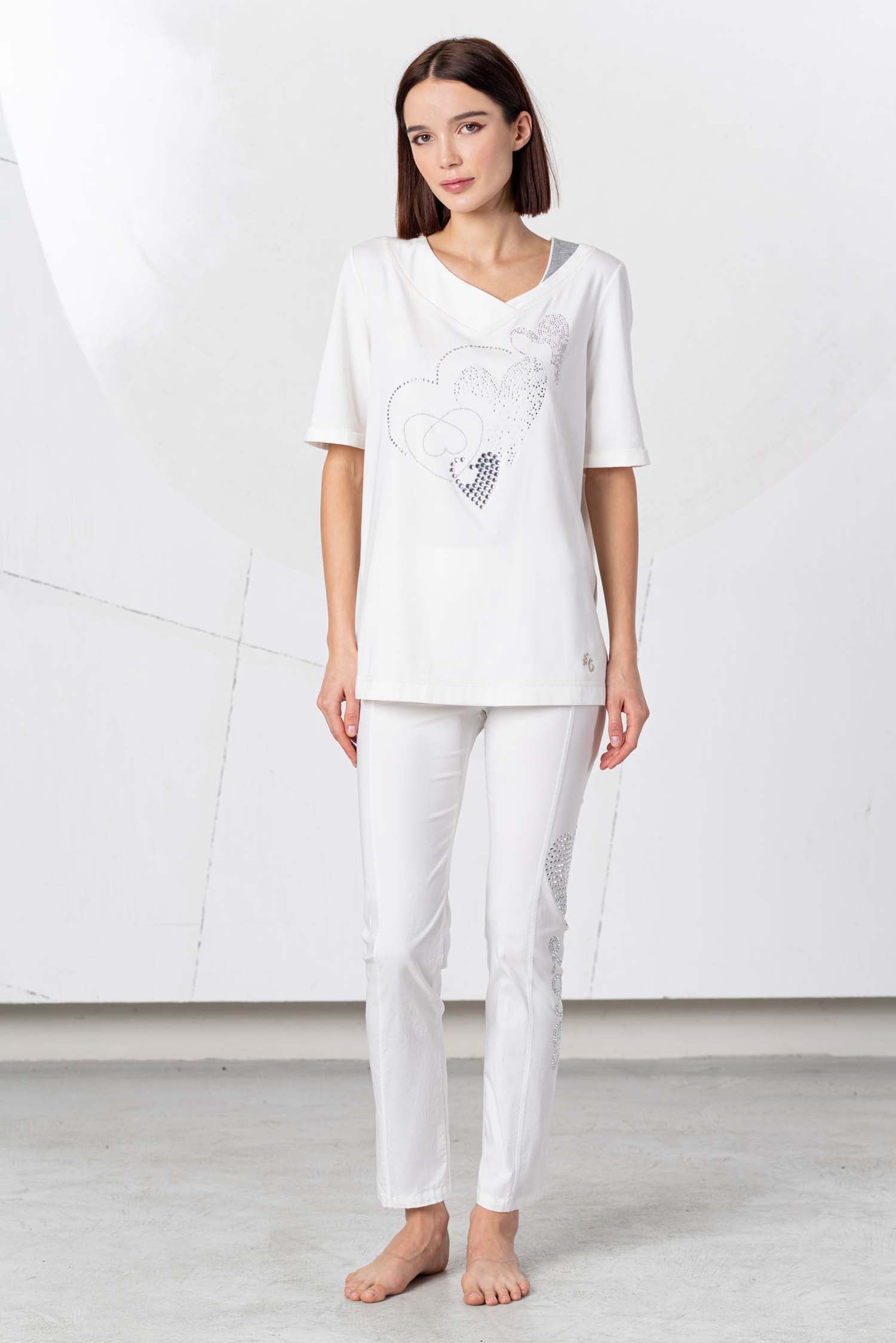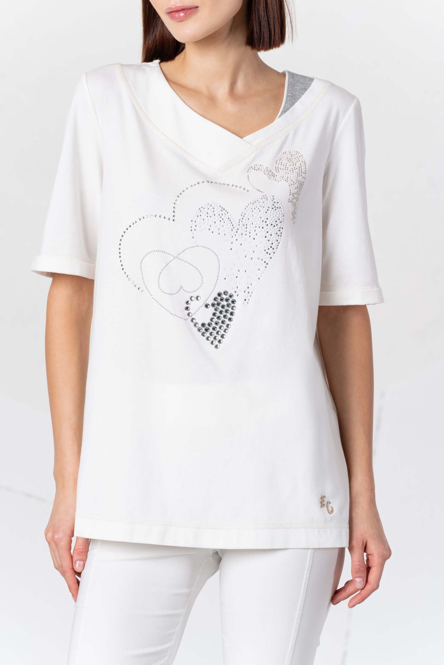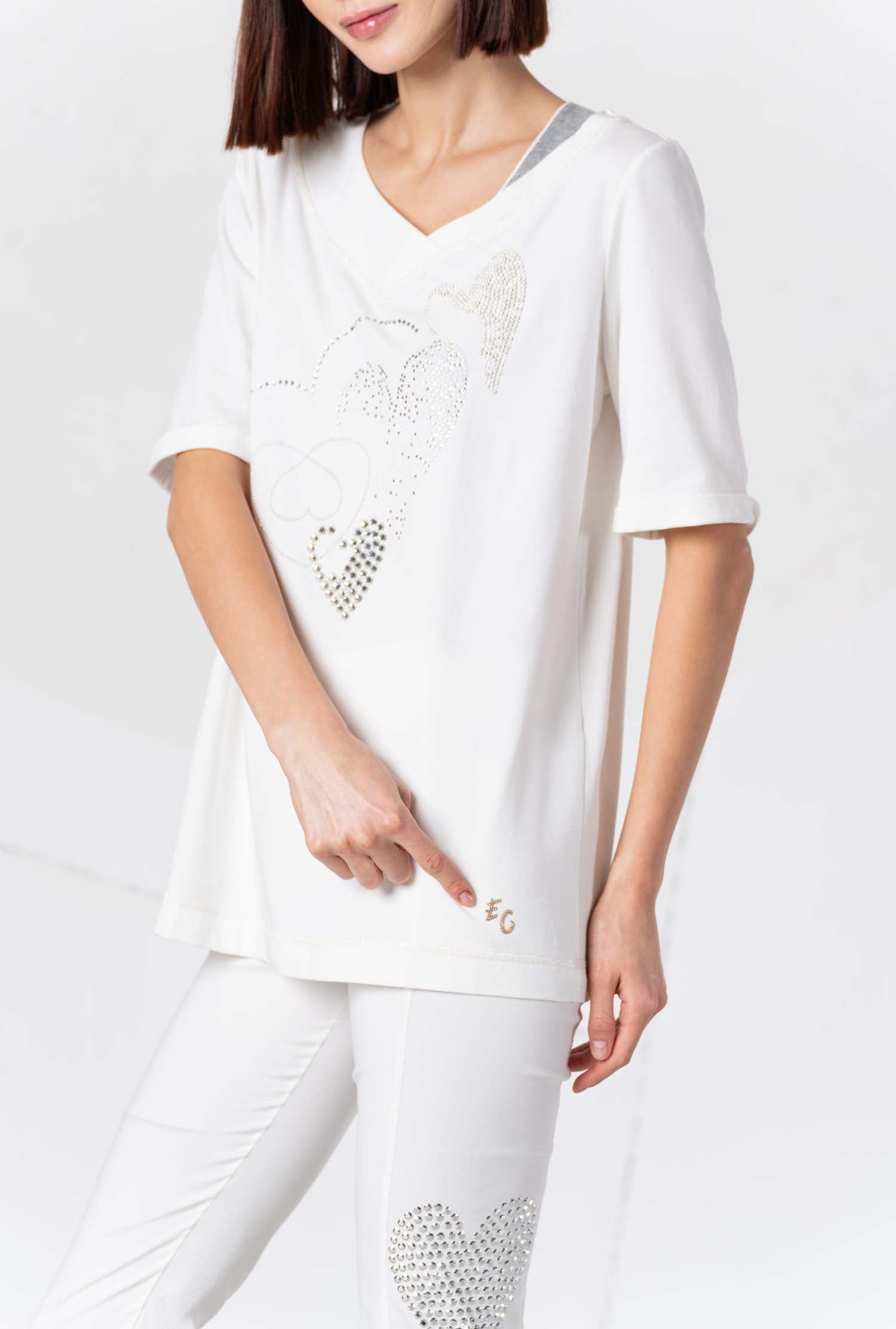 Experience a unique feeling of comfort with the ELISA CAVALETTI Bianco T-shirt. This white shirt impresses not only with its understated elegance but also with its sparkling black rhinestone heart. An eye-catching detail that elevates any outfit and adds a touch of luxury. Show off your attention to detail and make a statement with this special T-shirt!
