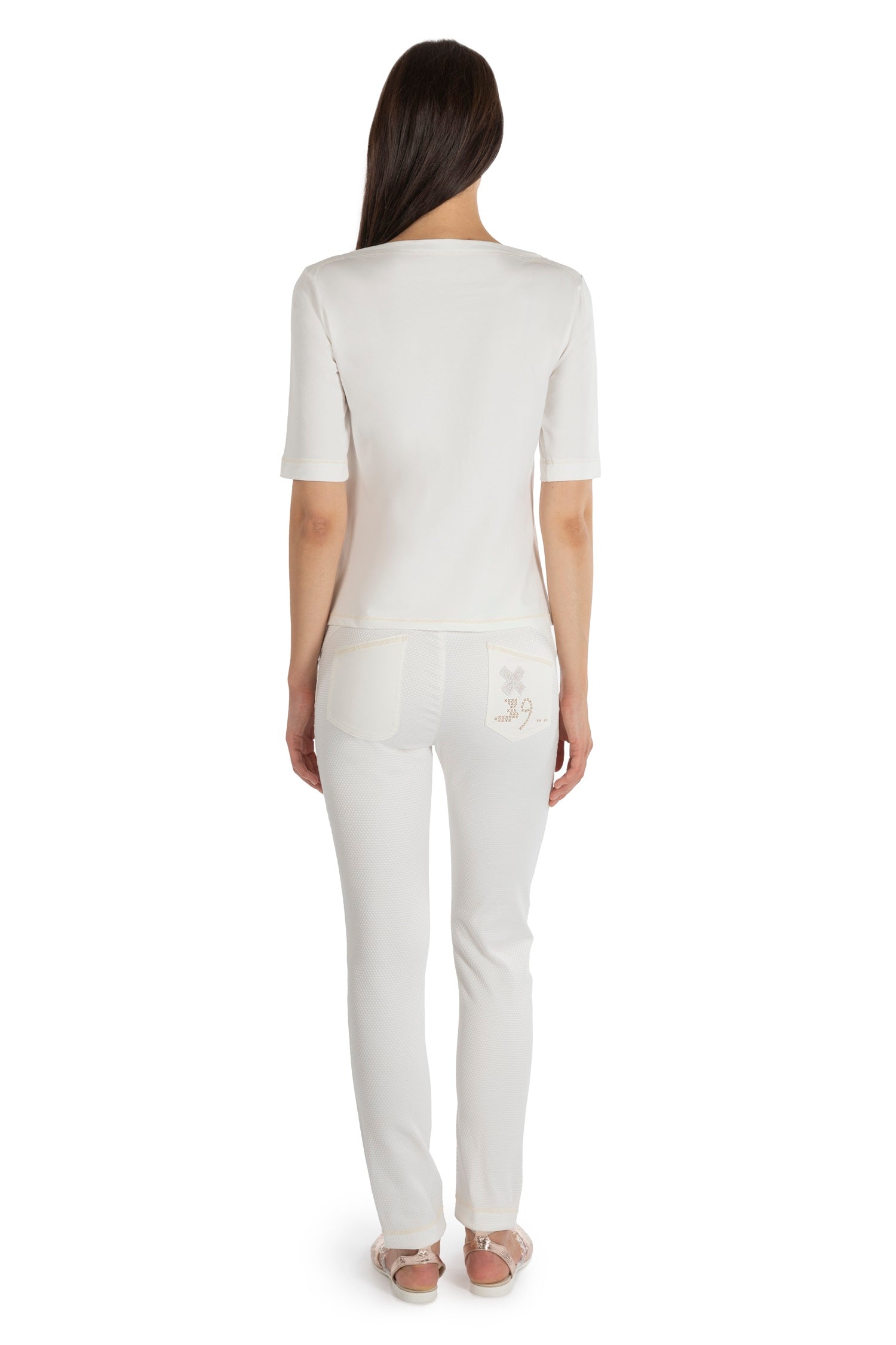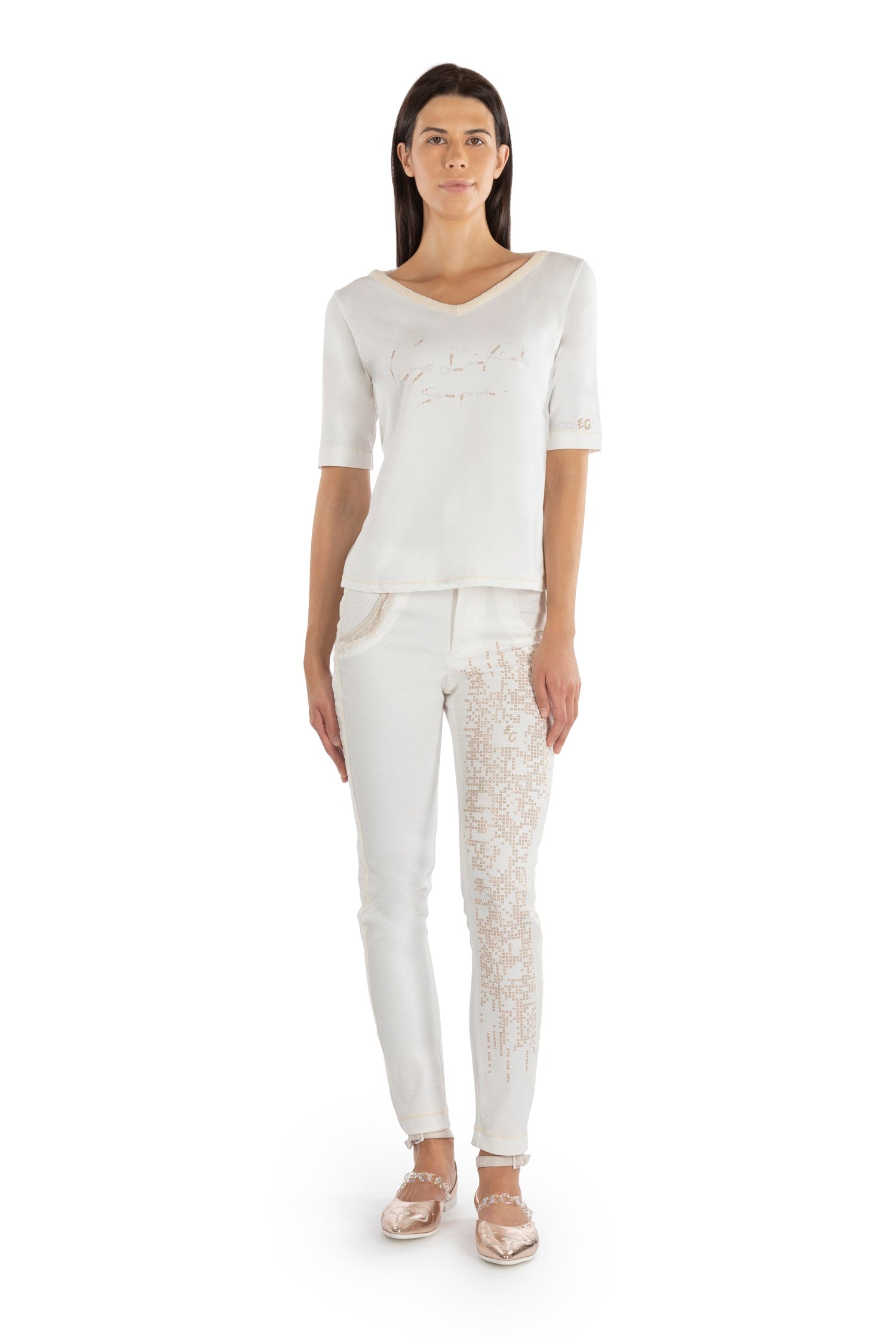 Discover the elegance of ELISA CAVALETTI's Incontro trousers! In radiant white with sparkling rhinestones and a flattering cut, these trousers are perfect for any occasion. Add a touch of luxury to your outfit and feel confident and stylish.