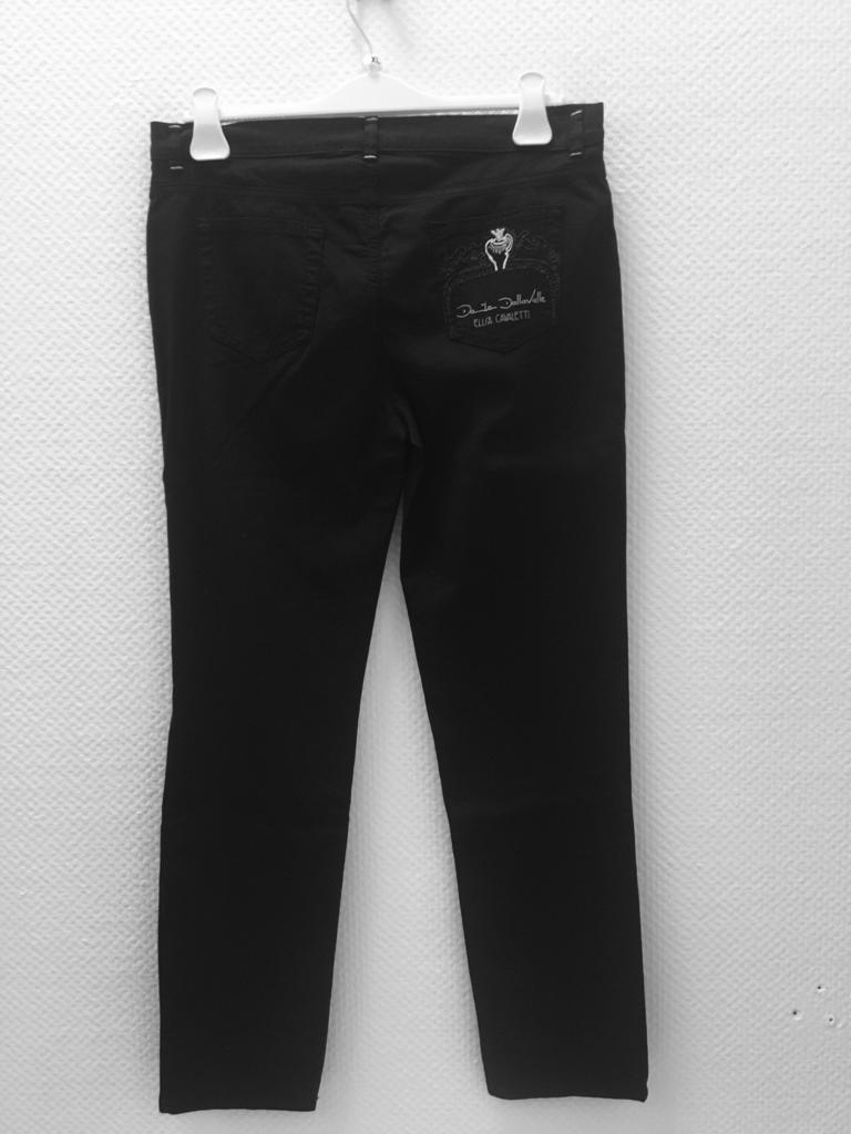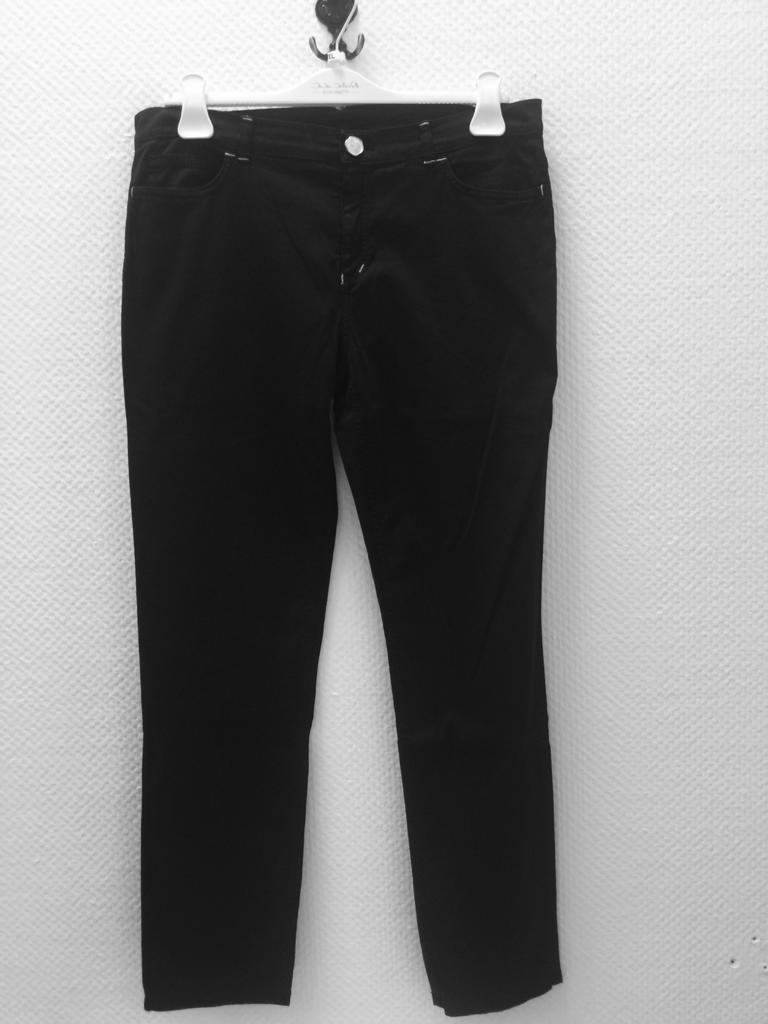 These fashionable black capri pants impress with their high stretch content, ensuring optimal comfort and a perfect fit. The versatile design is ideal for both elegant and casual looks, offering freedom of movement while maintaining a stylish silhouette. A must-have for discerning wardrobes.