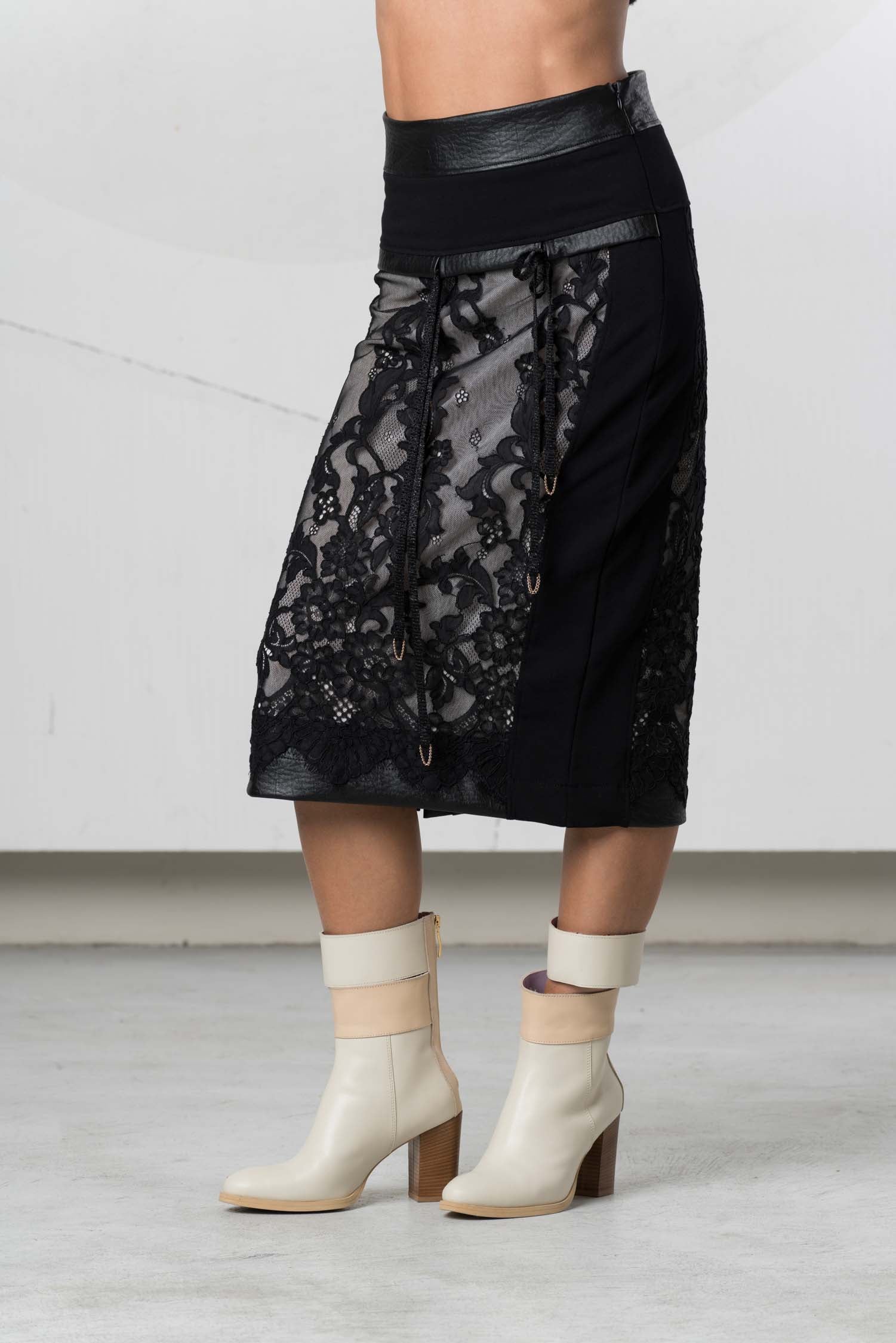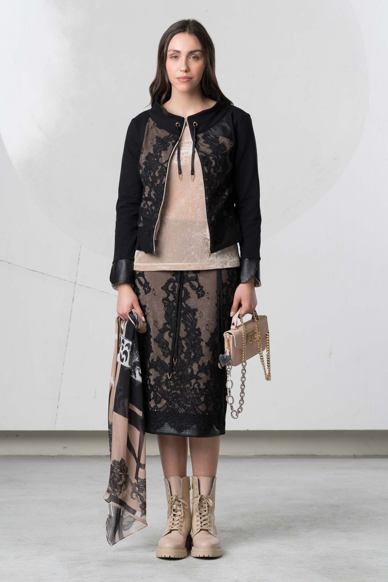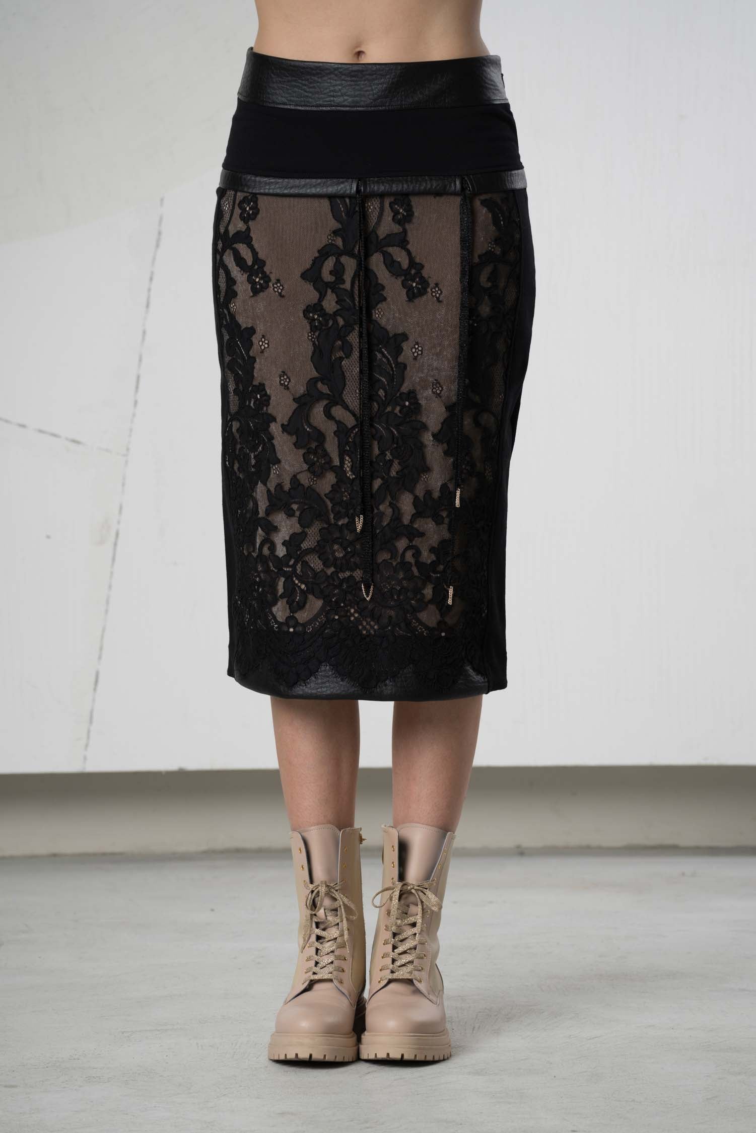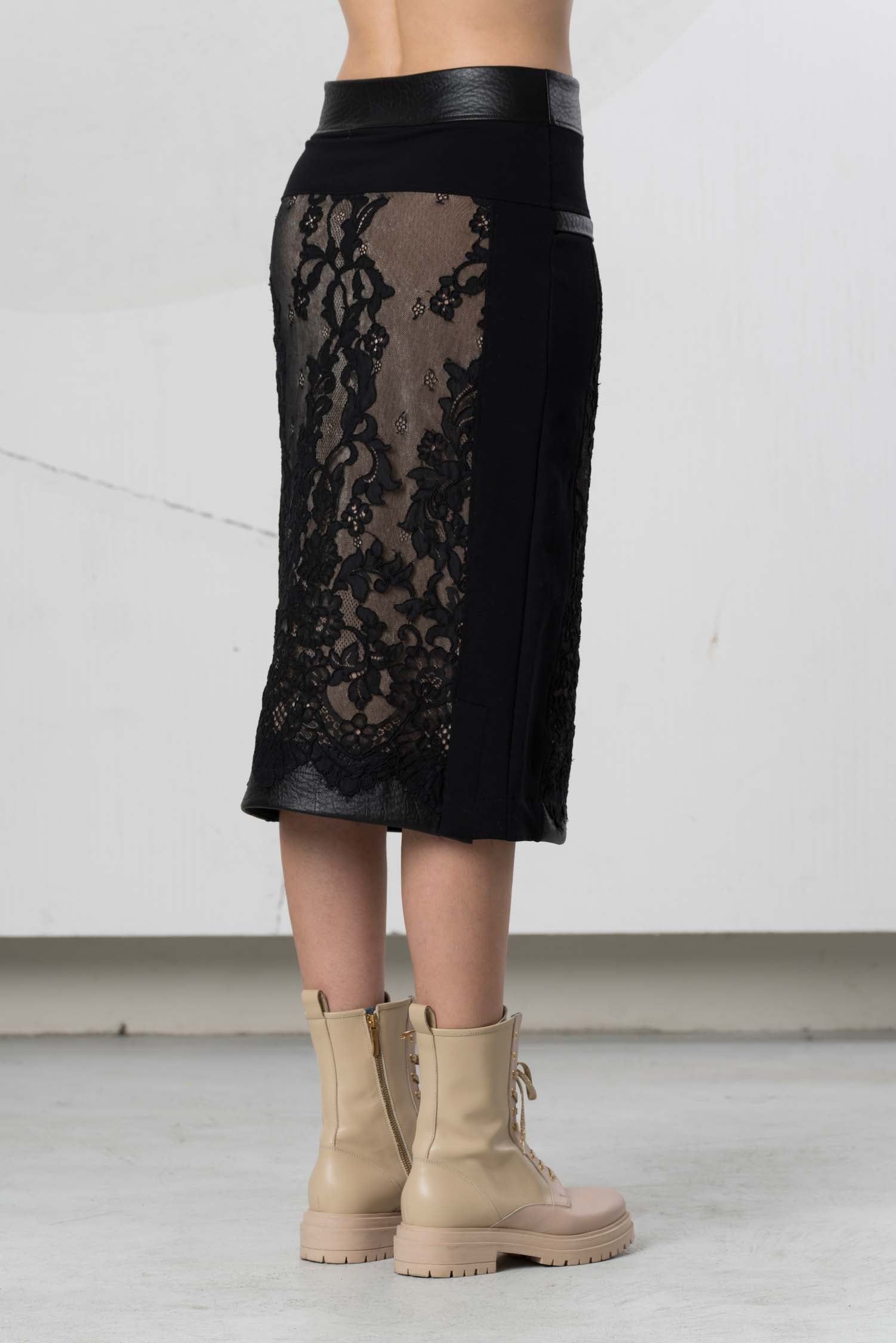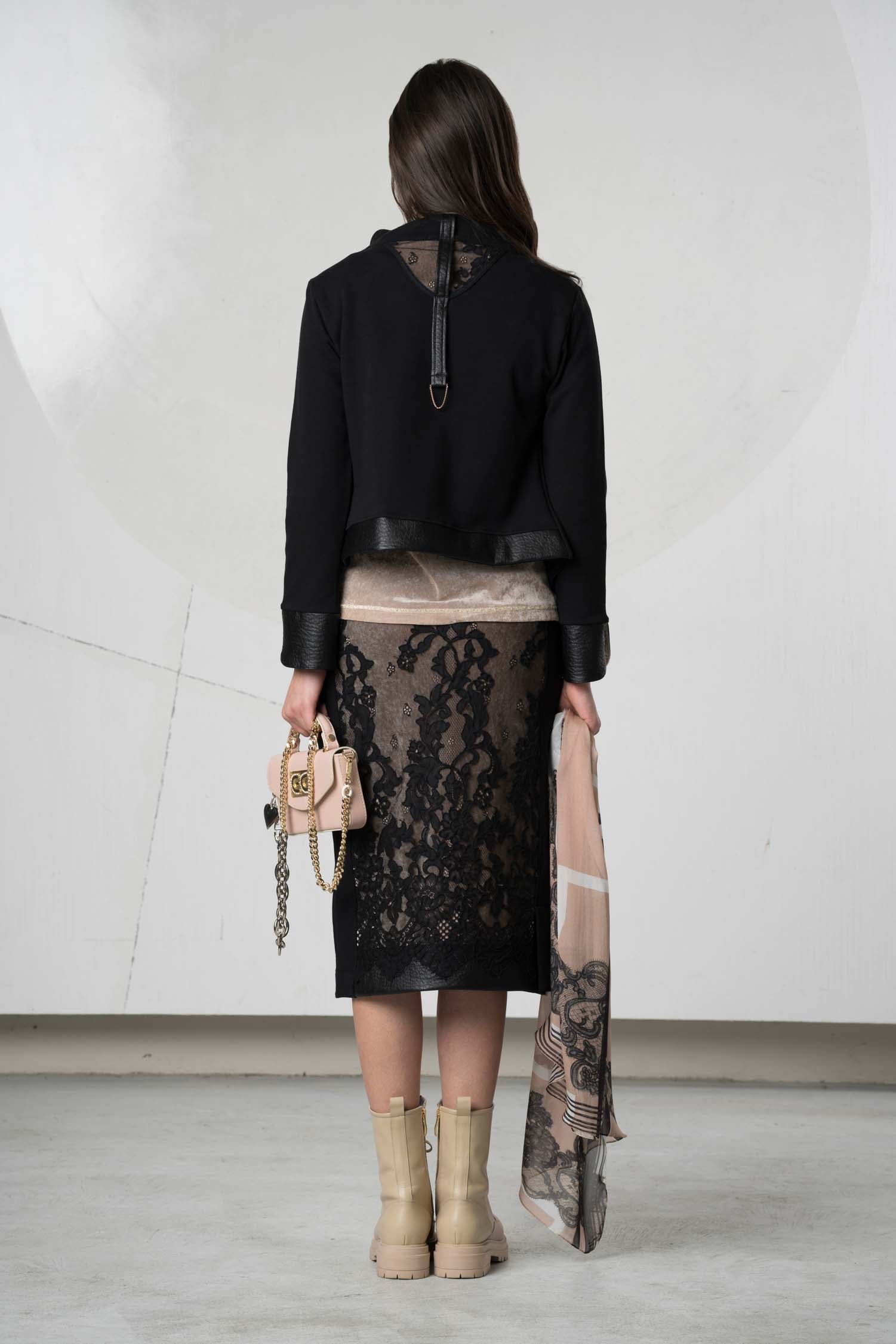 The knee-length Nero skirt impresses with its stylish combination of elegant black and a white underskirt. Different fabrics create a high-quality texture and a flattering silhouette. This versatile garment combines fashionable appeal with comfortable wear and is ideal for sophisticated looks.