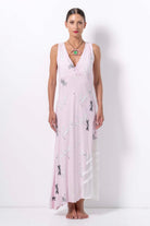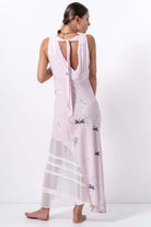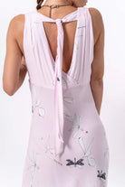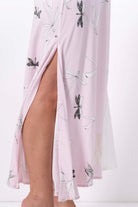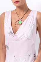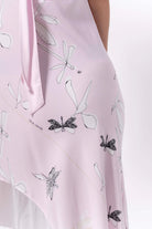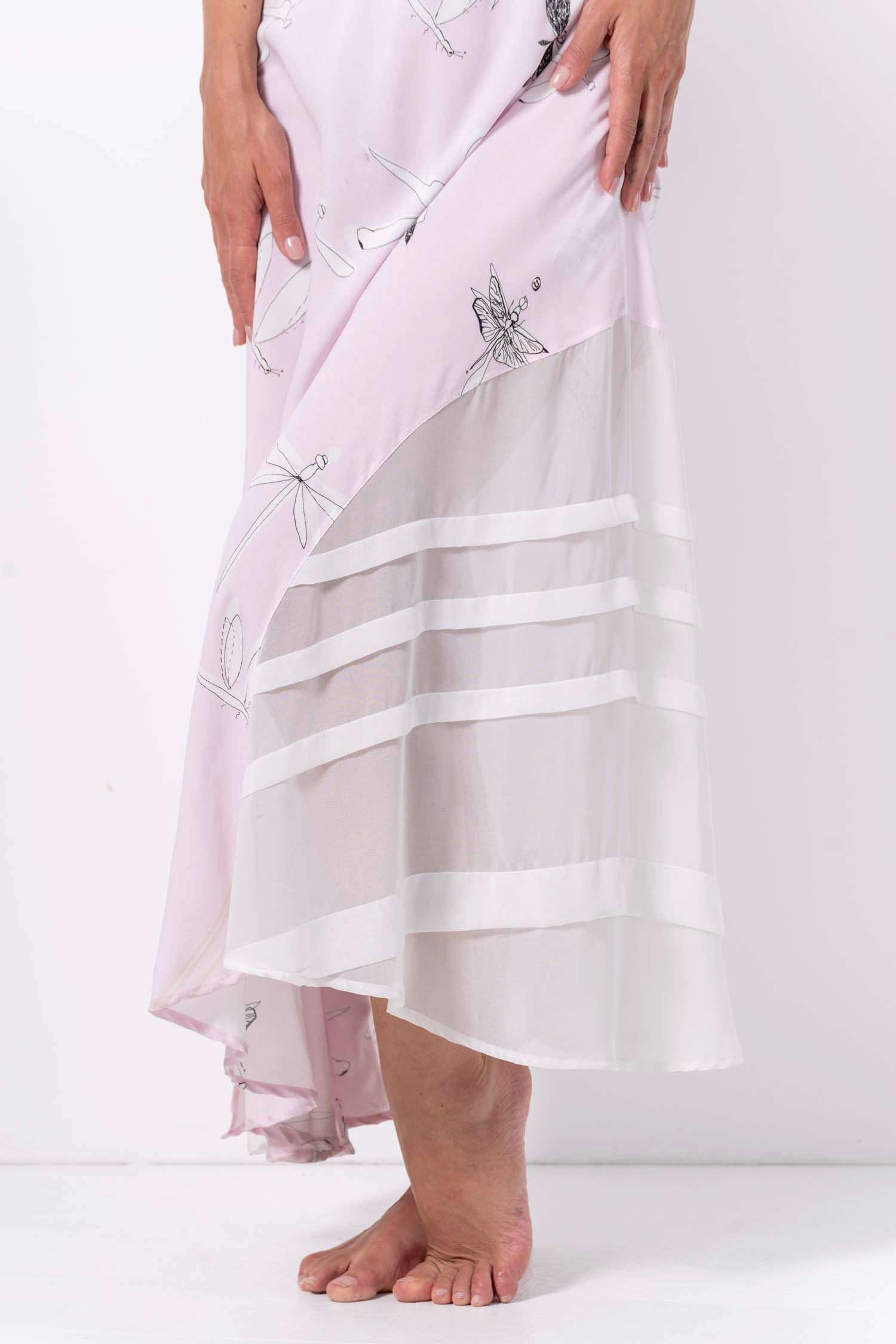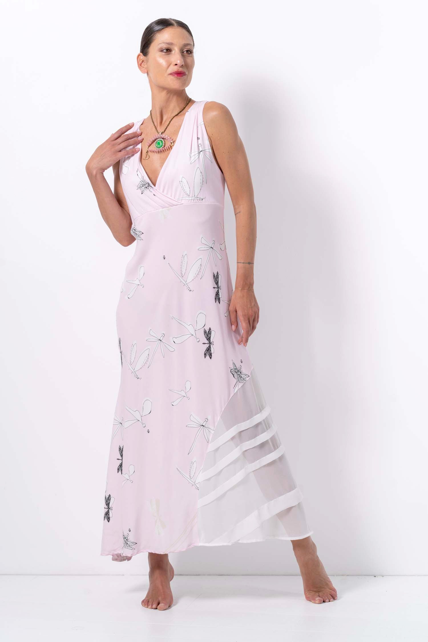 Add a touch of elegance and sensuality to your look with this long pink dress. The breathtaking pattern will make you feel like a dragonfly floating through the night, ensuring an unforgettable entrance.