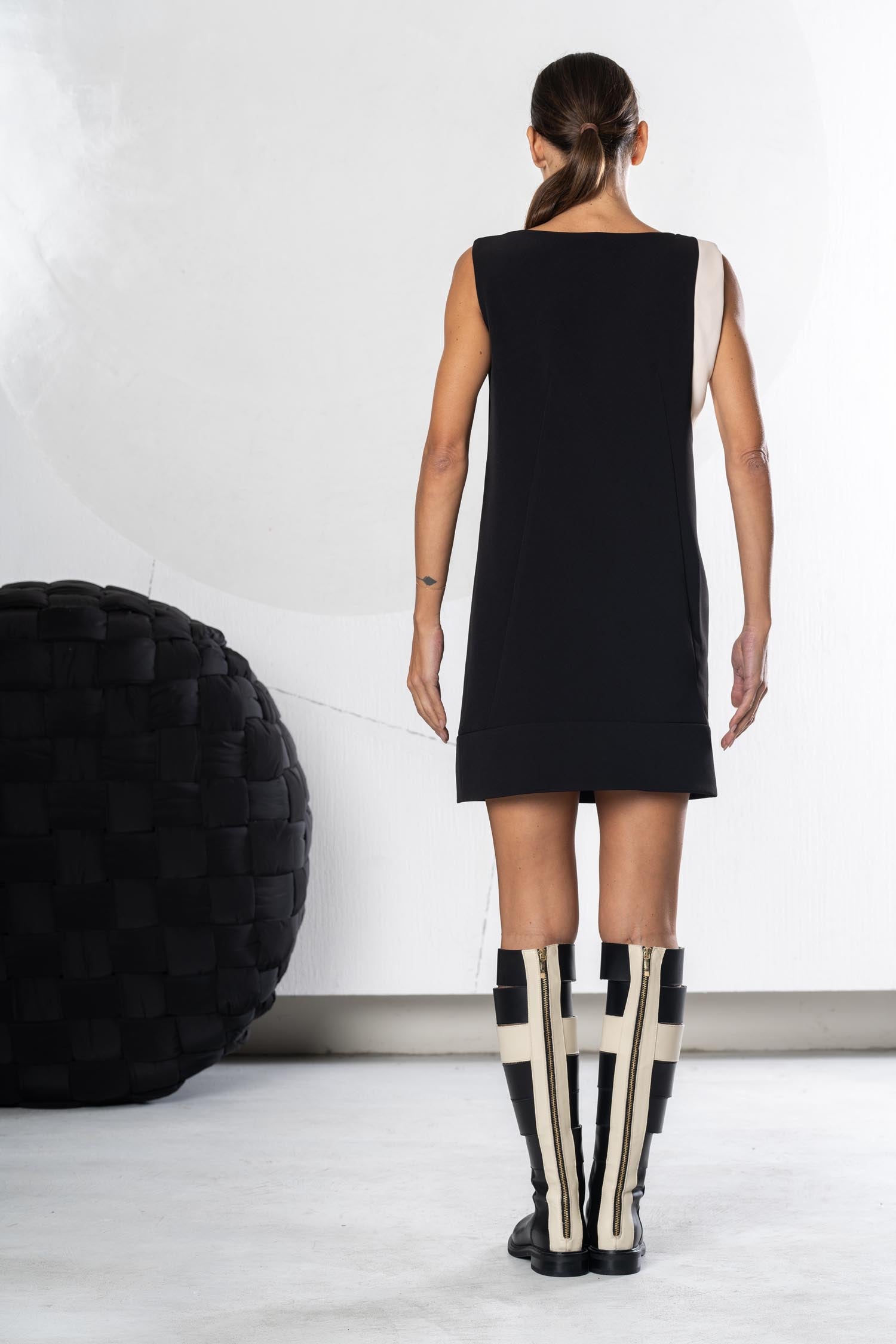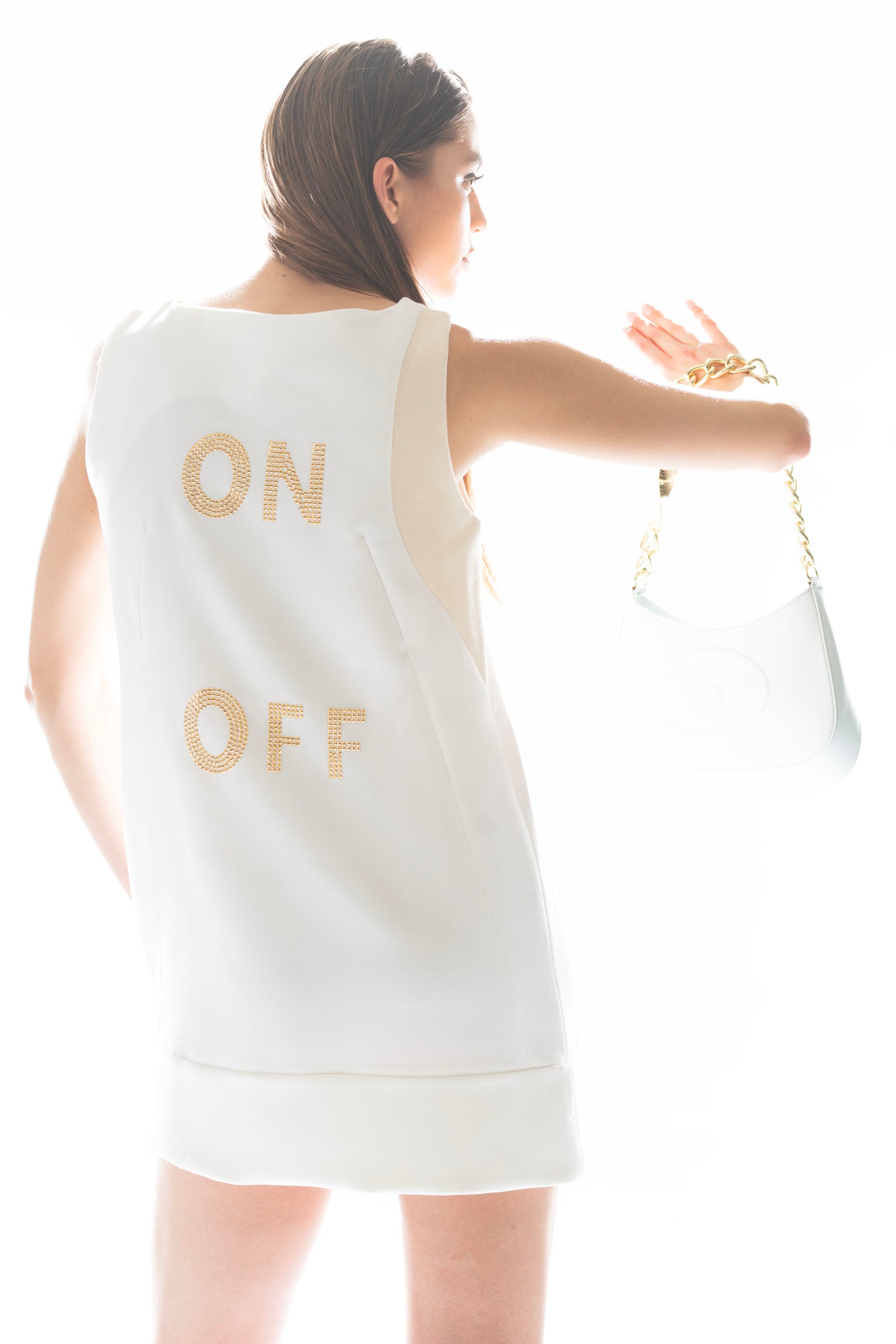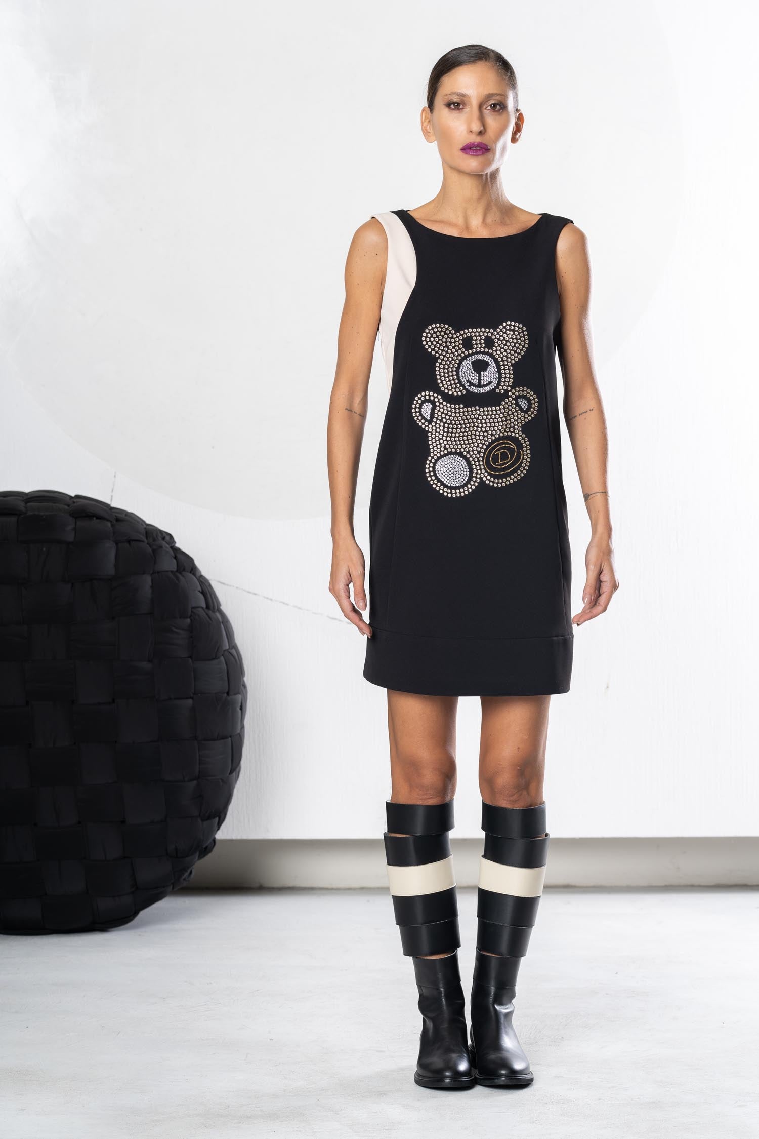 This short dress by DANIELA DALLAVALLE captivates with its elegant rhinestones in a bear pattern, adding a touch of glamour to the black or white design. Perfect for special occasions and making a stylish statement.