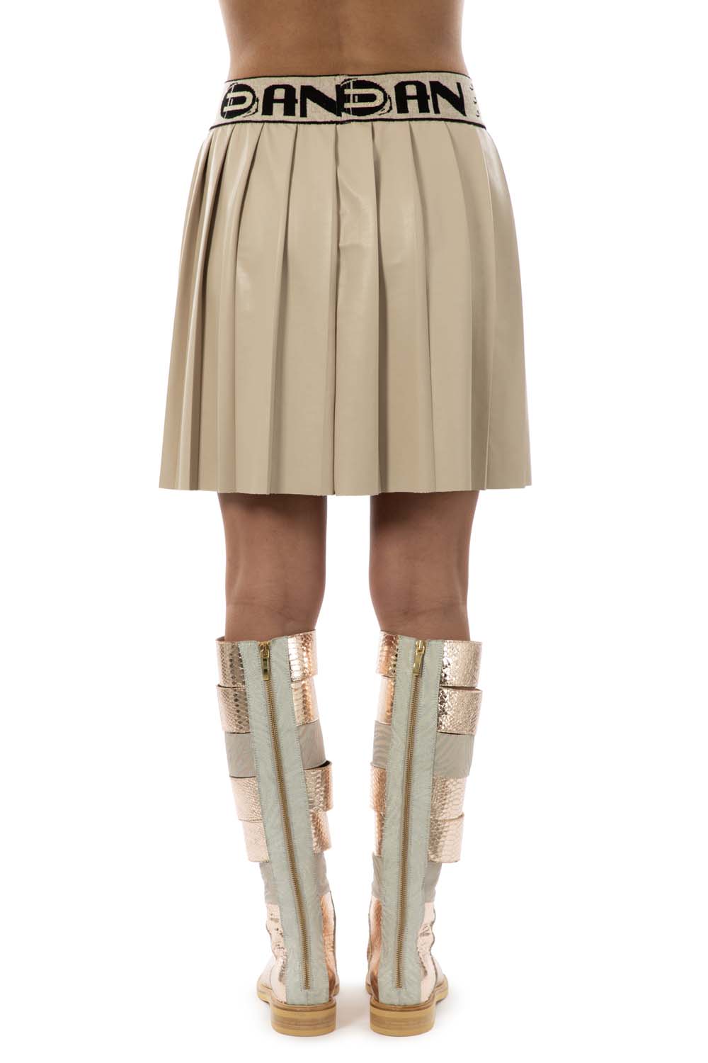 Achieve your individual look with the DANIELA DALLAVALLE skirt! This fashionable pleated skirt in faux leather impresses with its knee length and comfortable elasticated waistband. Available in various colors, it's a versatile and stylish garment for any occasion.
