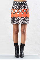 A skirt with an unconventional polka-dot design in an asymmetrical arrangement. The playful pattern gives this classic a modern twist. High-quality craftsmanship meets experimental aesthetics – ideal for fashionistas who consciously push boundaries.
