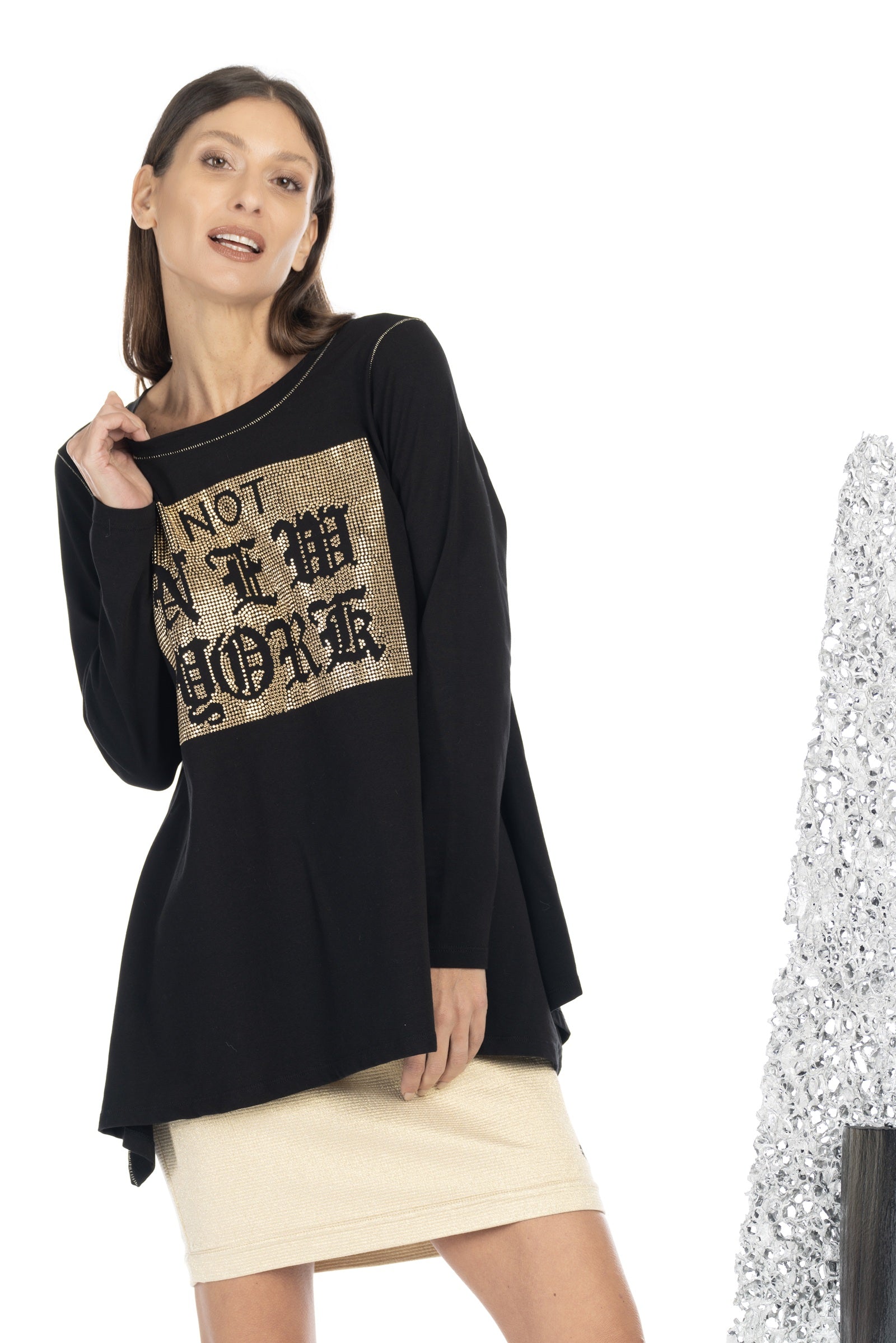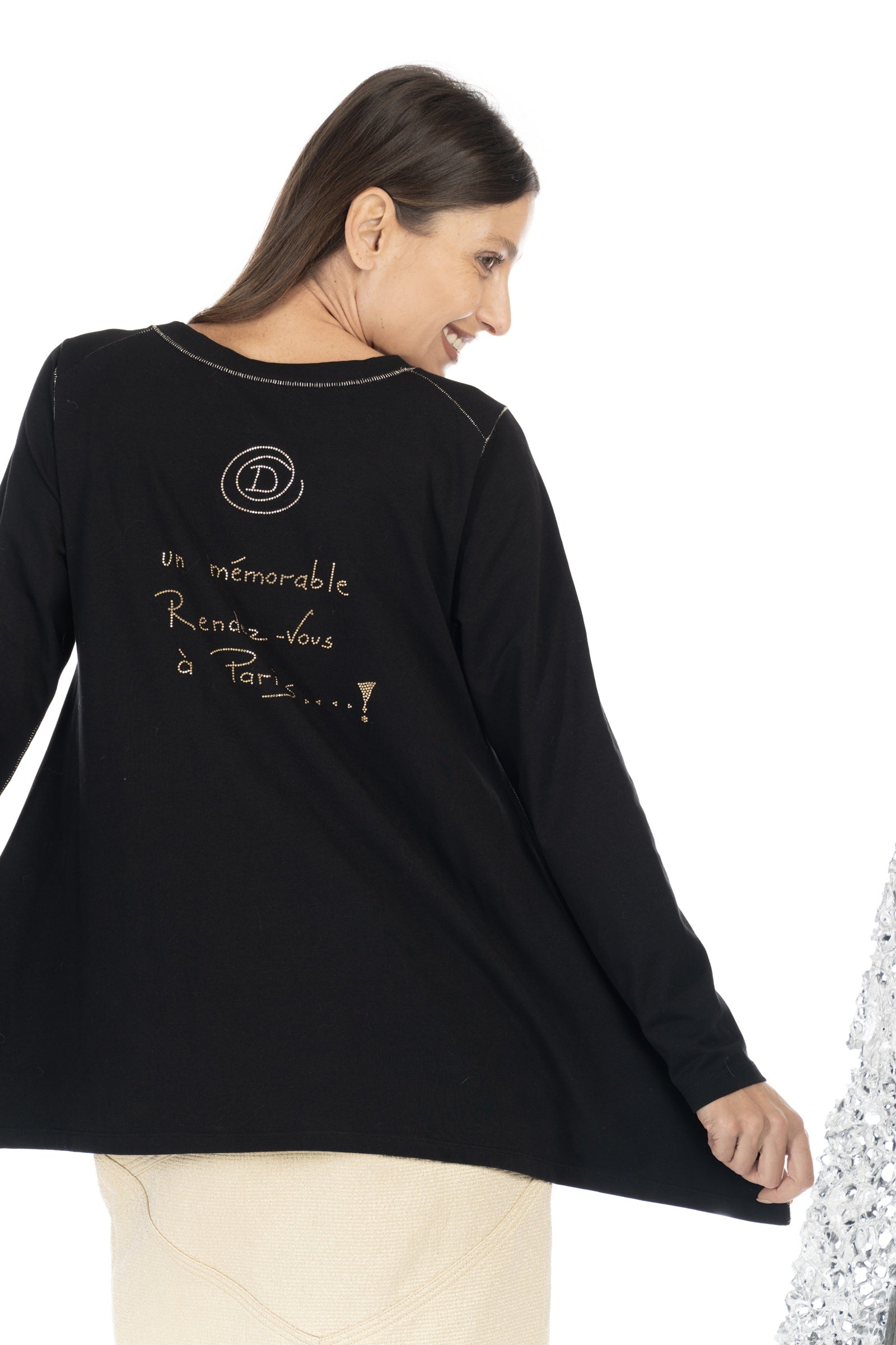 Enjoy the comfort and stylish details of our DANIELA DALLAVALLE sweatshirt. Its comfortable fit makes it the perfect everyday choice, while the gold print adds a touch of luxury. A stylish must-have for every fashion-conscious customer!