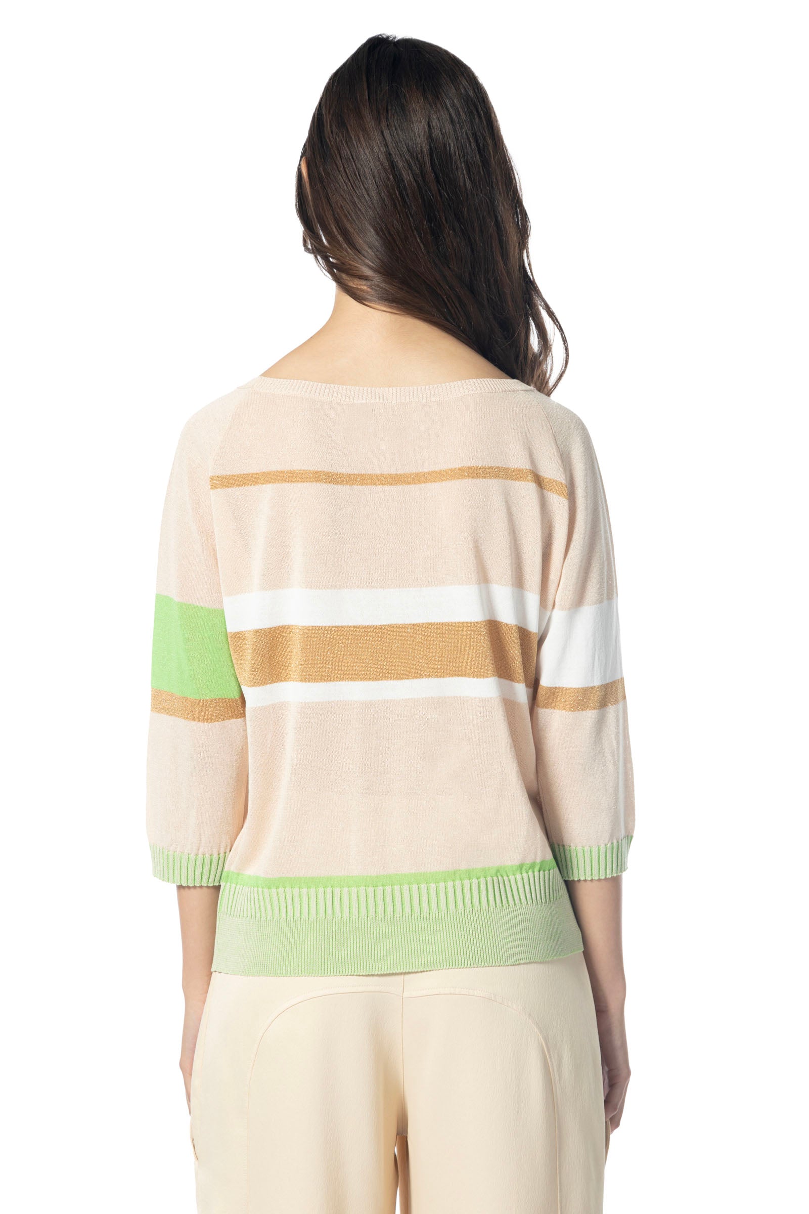 ELISA CAVALETTI Deserto knitted sweater - Beautiful knitted shirt in beige, green and brown with three-quarter sleeves and an attractive pattern. Perfect for a unique and stylish look. Let yourself be infected by the passion for this product and get this must-have in your wardrobe!