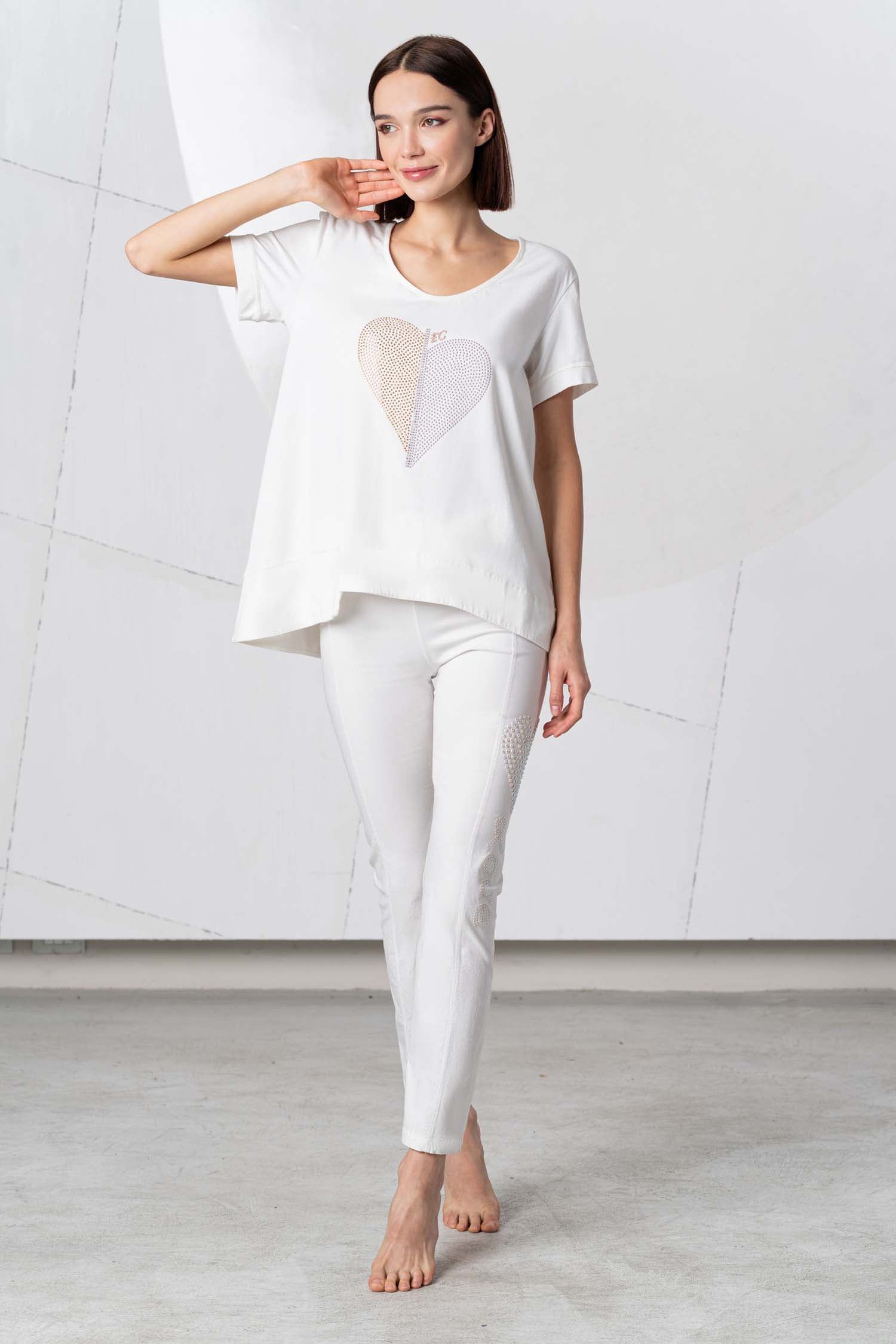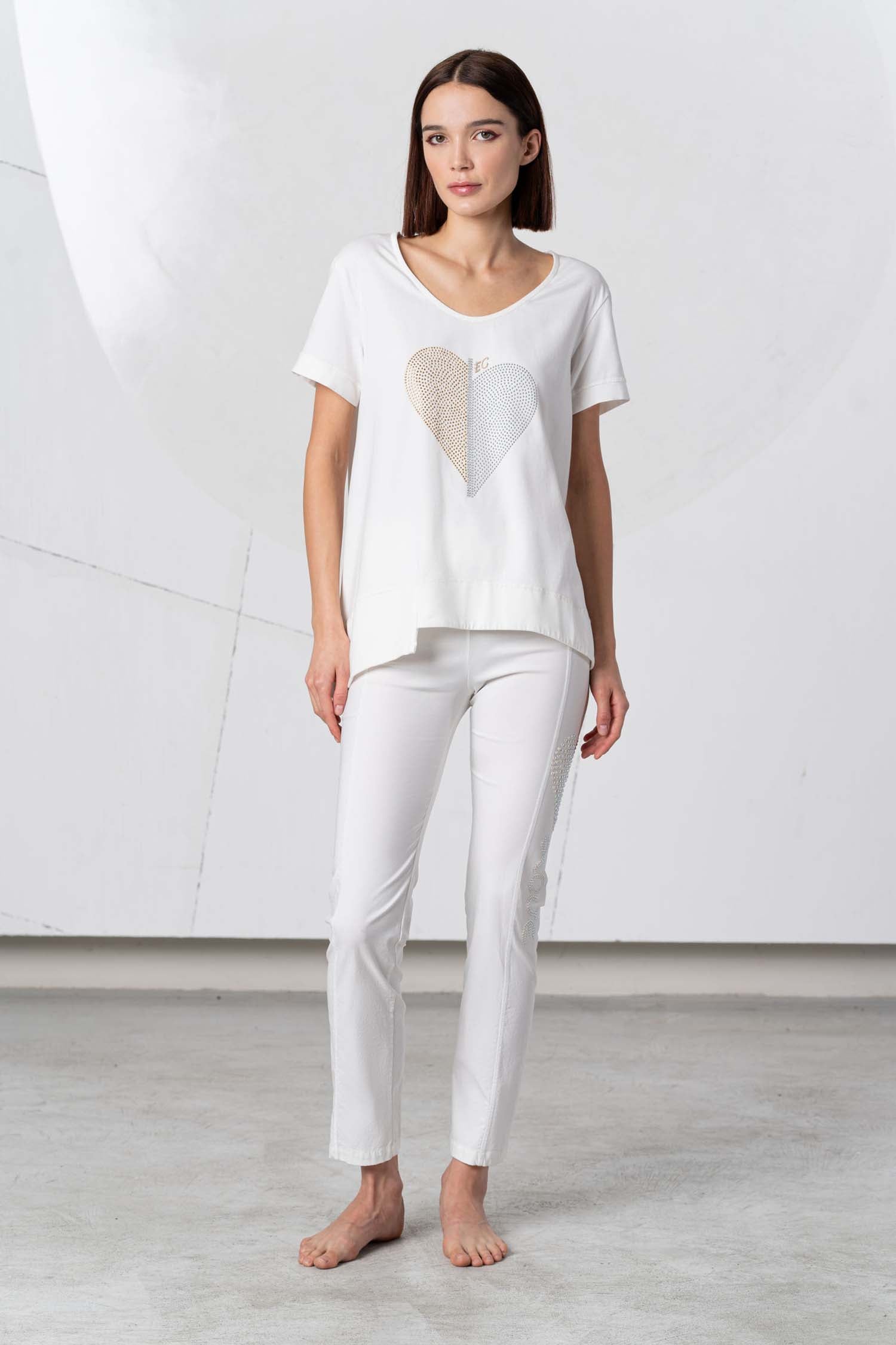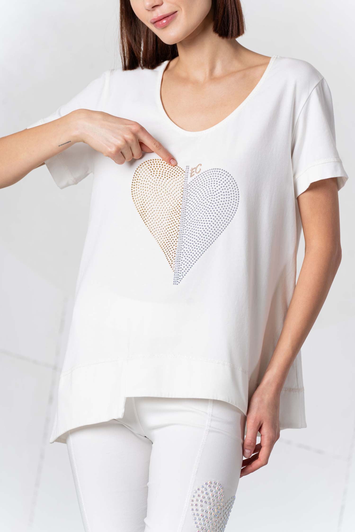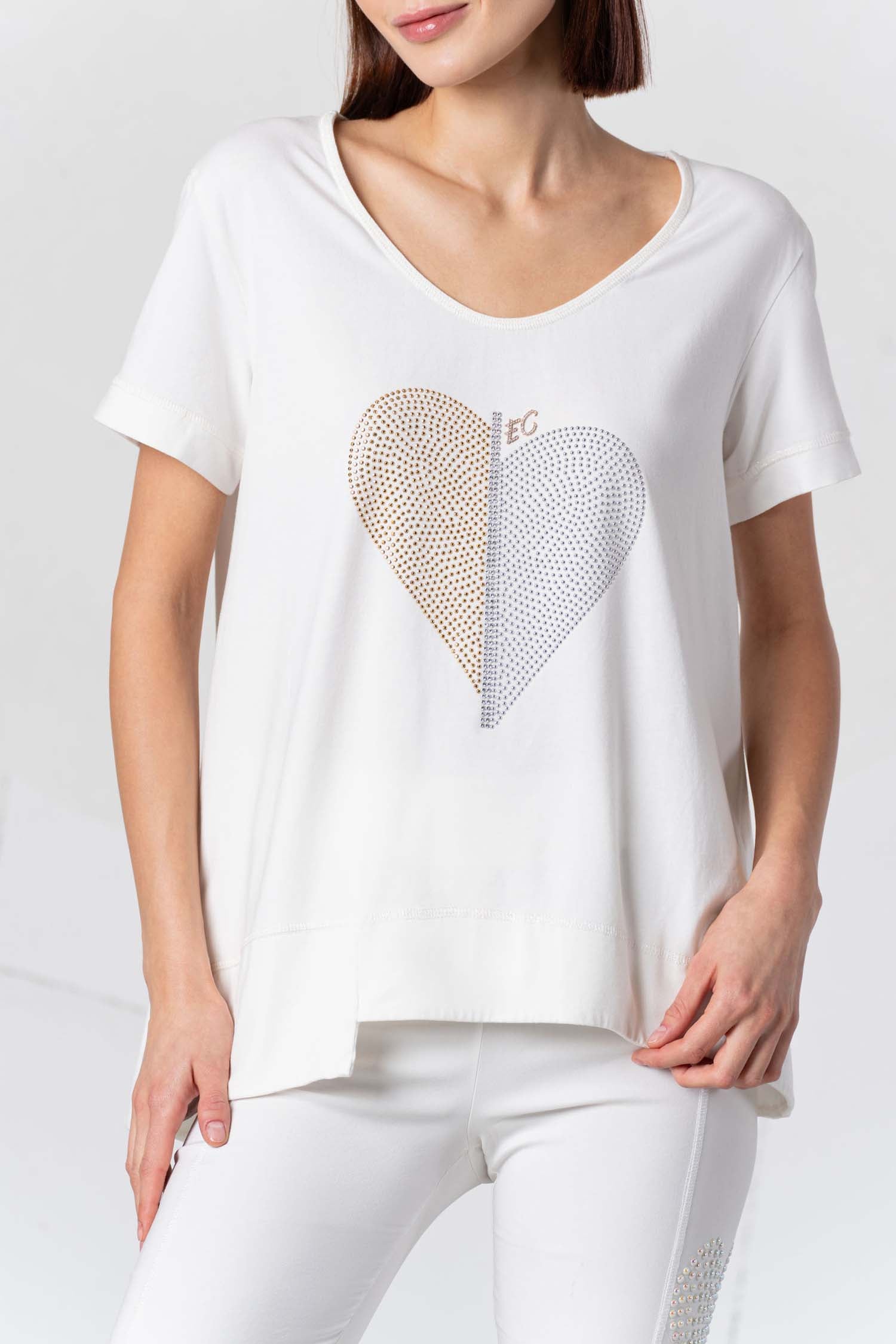 Sublimez votre tenue avec le t-shirt ELISA CAVALETTI Incontro ! Ce t-shirt blanc est orné d'un cœur en strass argentés et dorés qui vous fera briller. Idéal pour un look glamour !