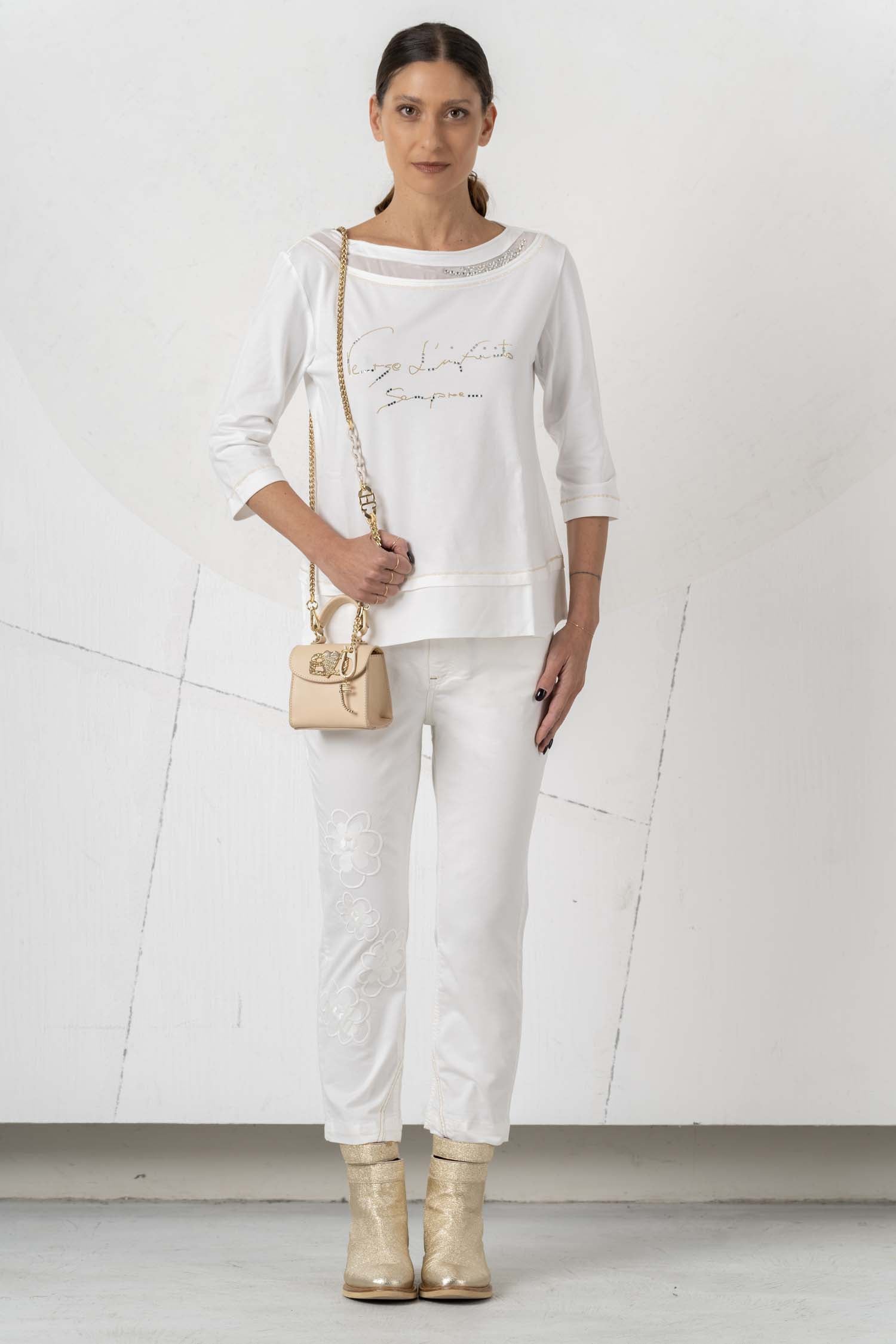 Vivez un été élégant et stylé avec le pantalon capri ELISA CAVALETTI. Ce pantalon brodé, disponible en plusieurs coloris, apporte une touche spéciale à votre tenue et vous donne un air estival. Idéal pour un look tendance lors des chaudes journées d'été !
