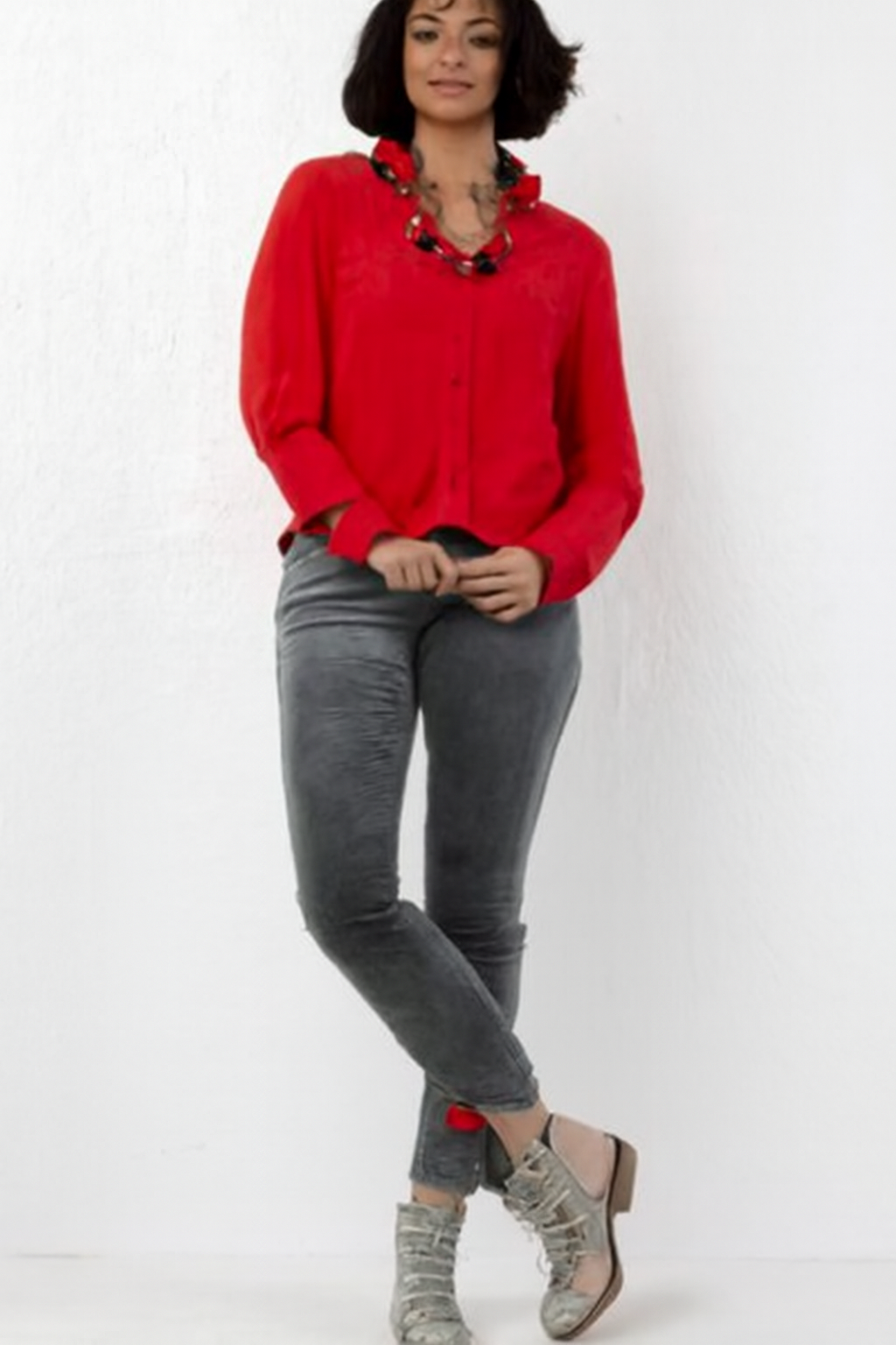 Ce pantalon élégant gris anthracite séduit par sa douceur grâce à son velours et ses subtiles touches de rouge à l'ourlet, pour un look résolument moderne. Sa coupe fuselée et son confort optimal en font le compagnon idéal de toutes les occasions. Il se marie aussi bien avec un chemisier raffiné qu'avec un haut décontracté, pour un style à la fois confortable et tendance.