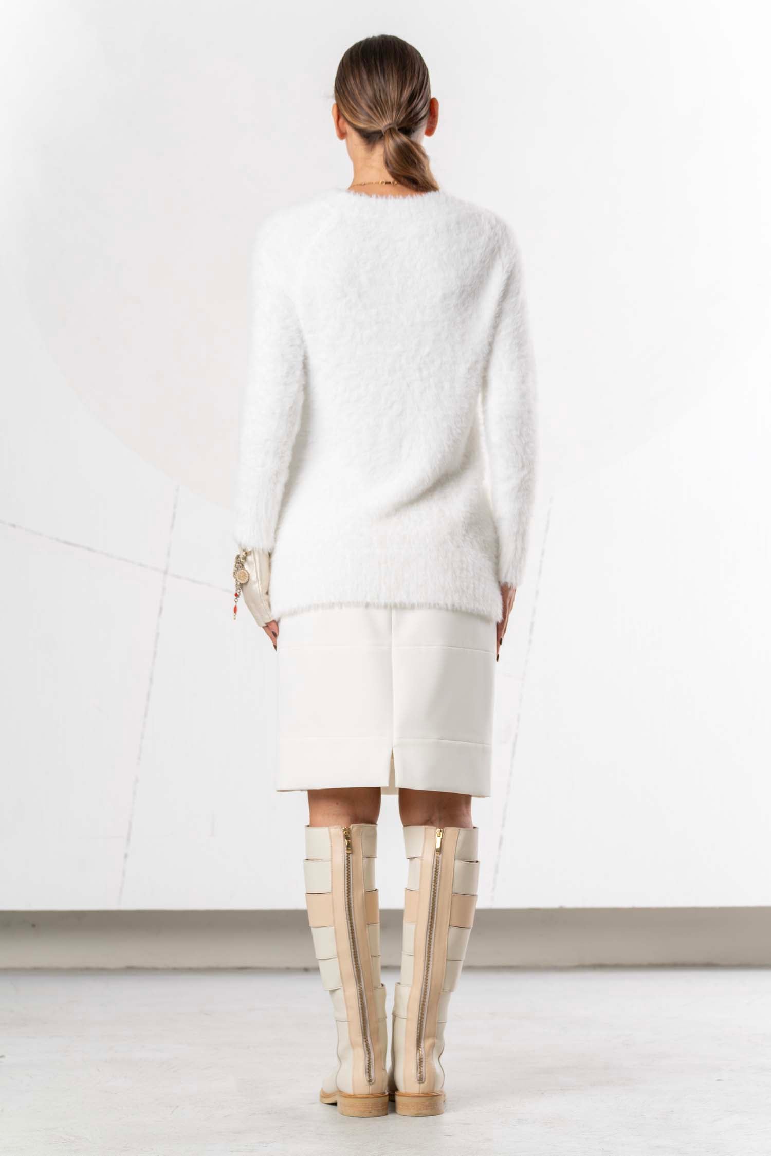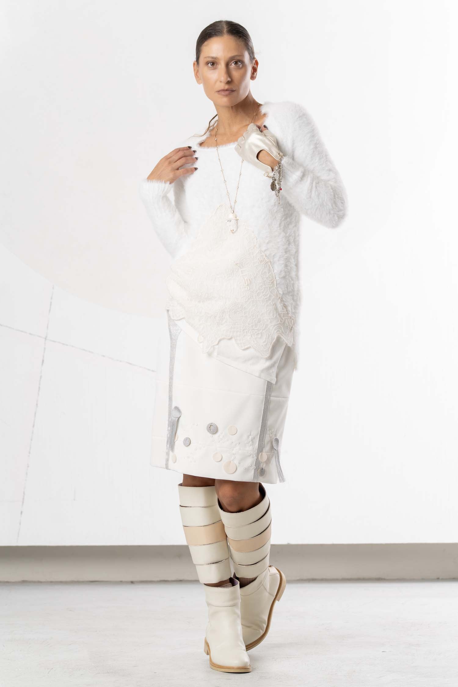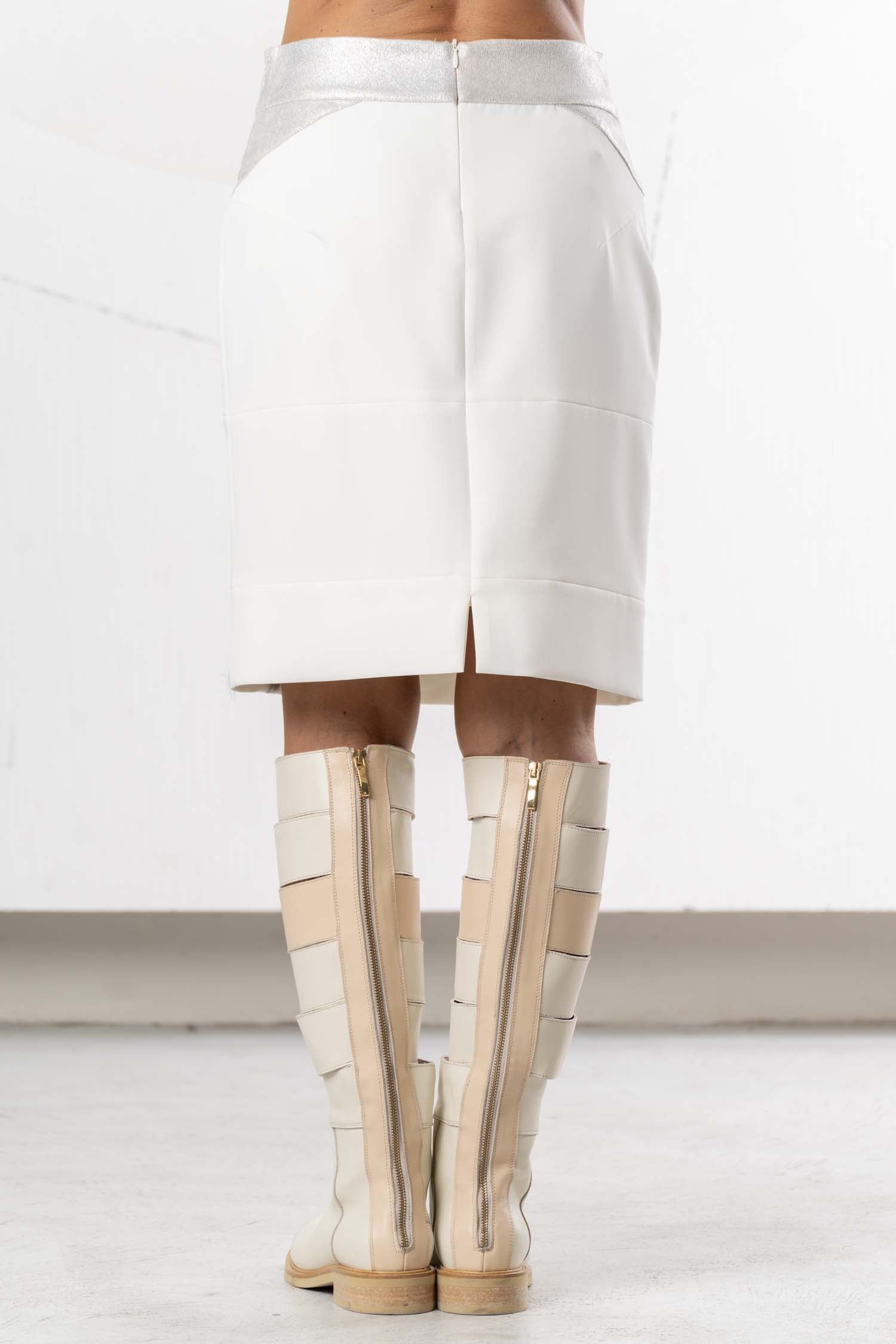 Jupe ELISA CAVALETTI mi-longue blanche à détails argentés