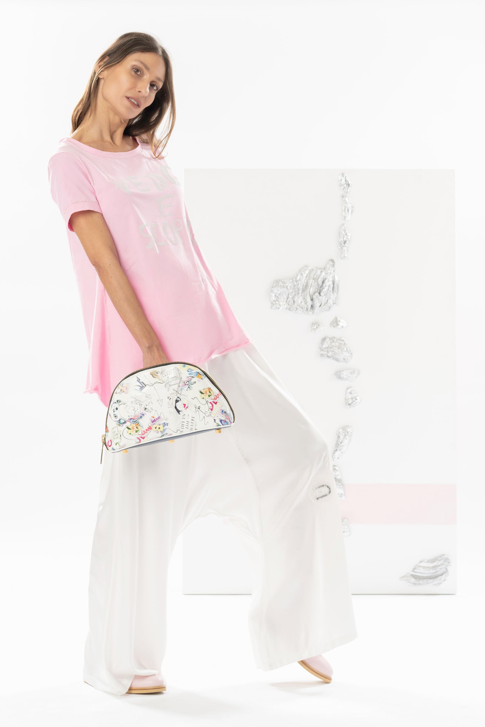 Découvrez l'élégance décalée de la pochette Stampa de DANIELA DALLAVALLE. Son motif blanc et coloré raffiné en fait l'accessoire idéal pour toutes les occasions. Apportez une touche d'extravagance à votre tenue et attirez tous les regards.