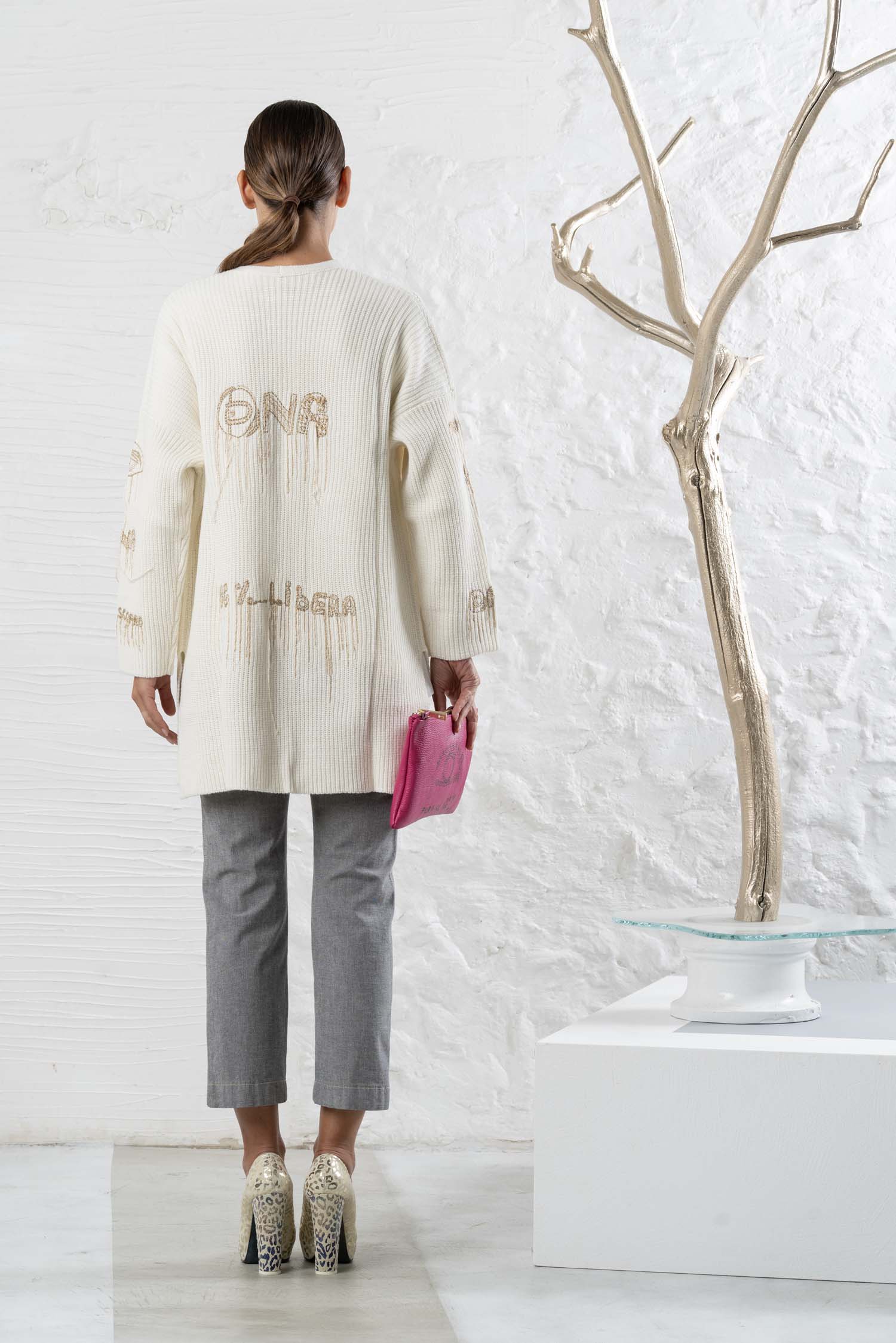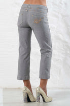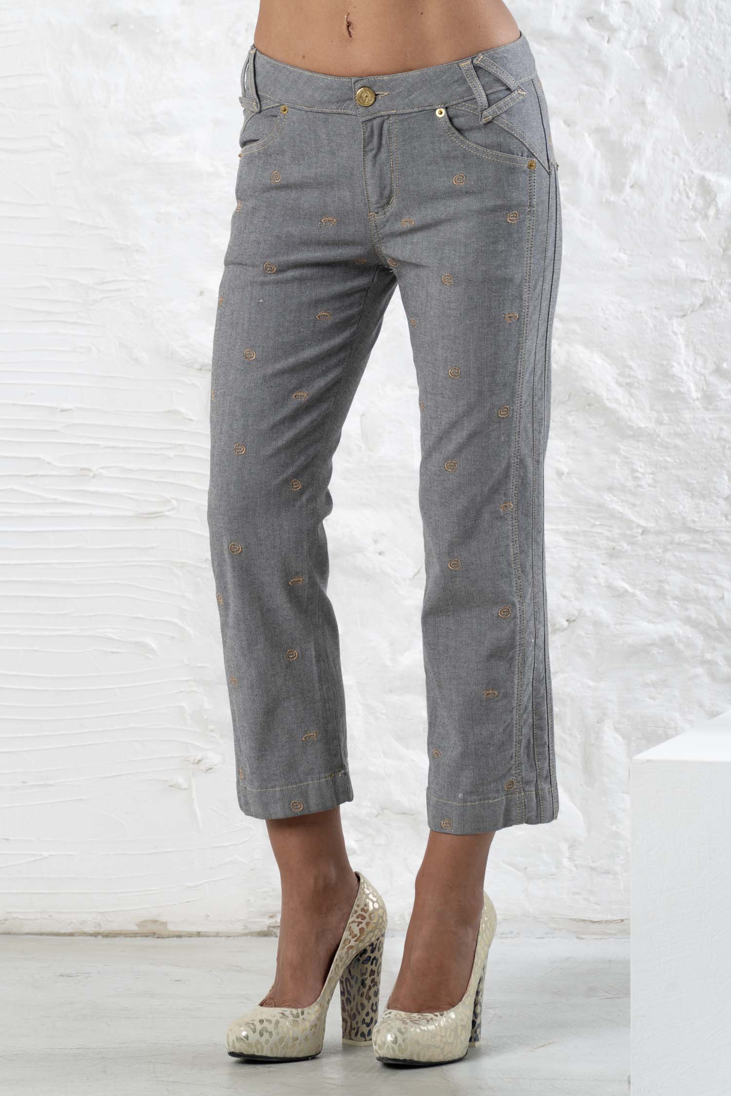Découvrez le jean Daniela Dallavalle, élégant et orné de détails dorés, qui sublimera votre garde-robe ! Apportez une touche d'originalité à votre style et révélez votre créativité et votre polyvalence ! Portez-le avec plaisir !