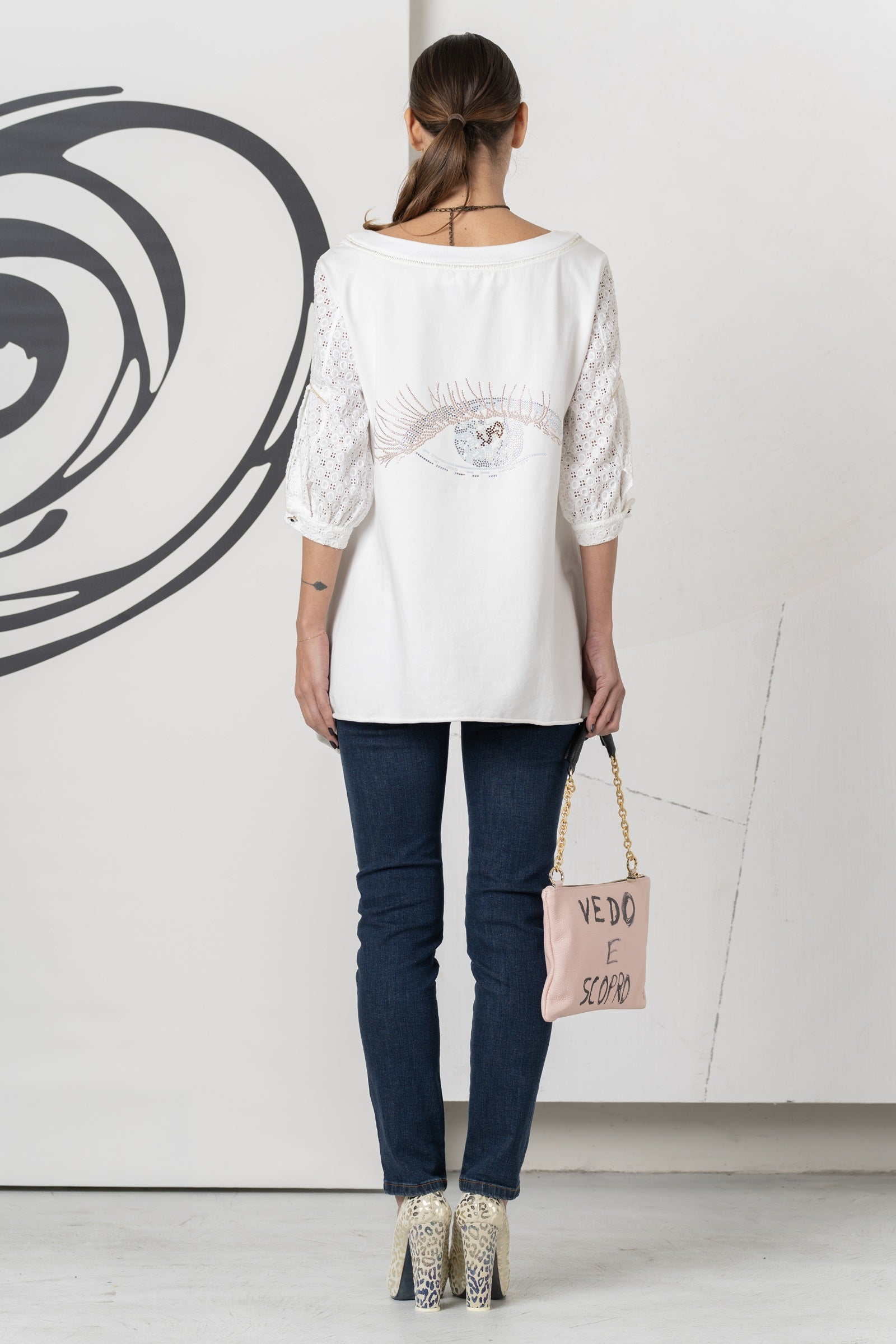 Offrez-vous un confort et un style incomparables avec le sweat-shirt Bianco de DANIELA DALLAVALLE. Le haut idéal pour un look à la fois stylé et décontracté. D'un blanc classique, il est orné d'un motif ajouré tendance pour une touche de fraîcheur supplémentaire. Laissez-vous séduire par ce sweat-shirt et sublimez votre tenue !