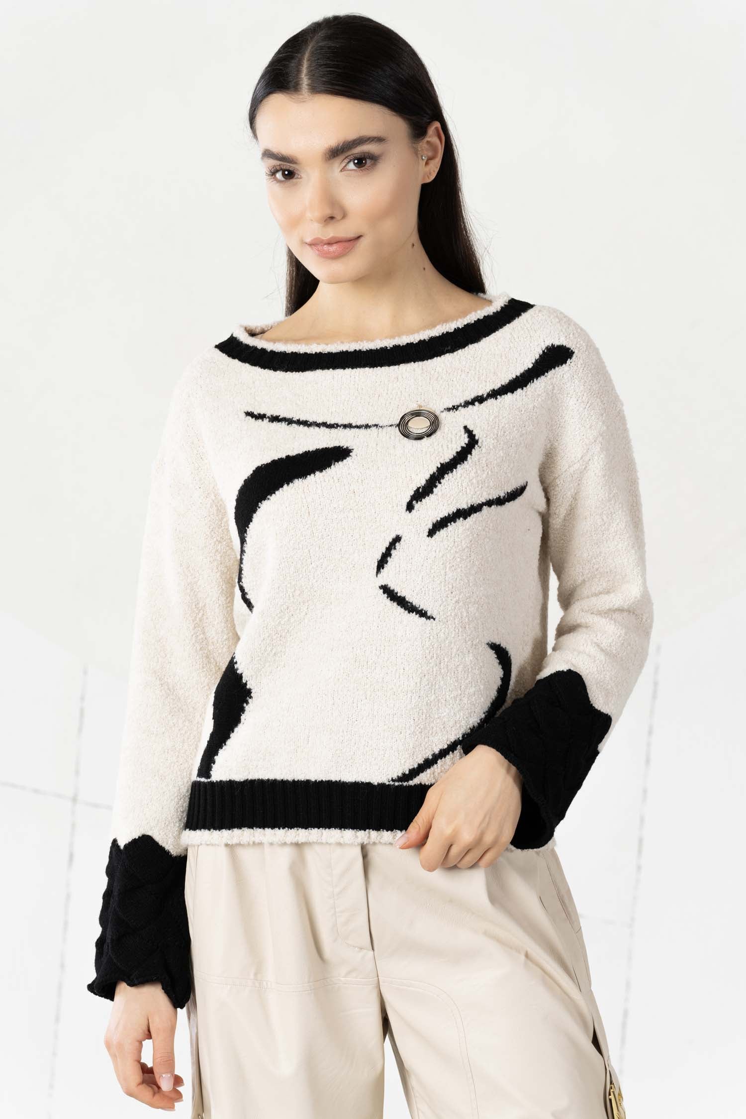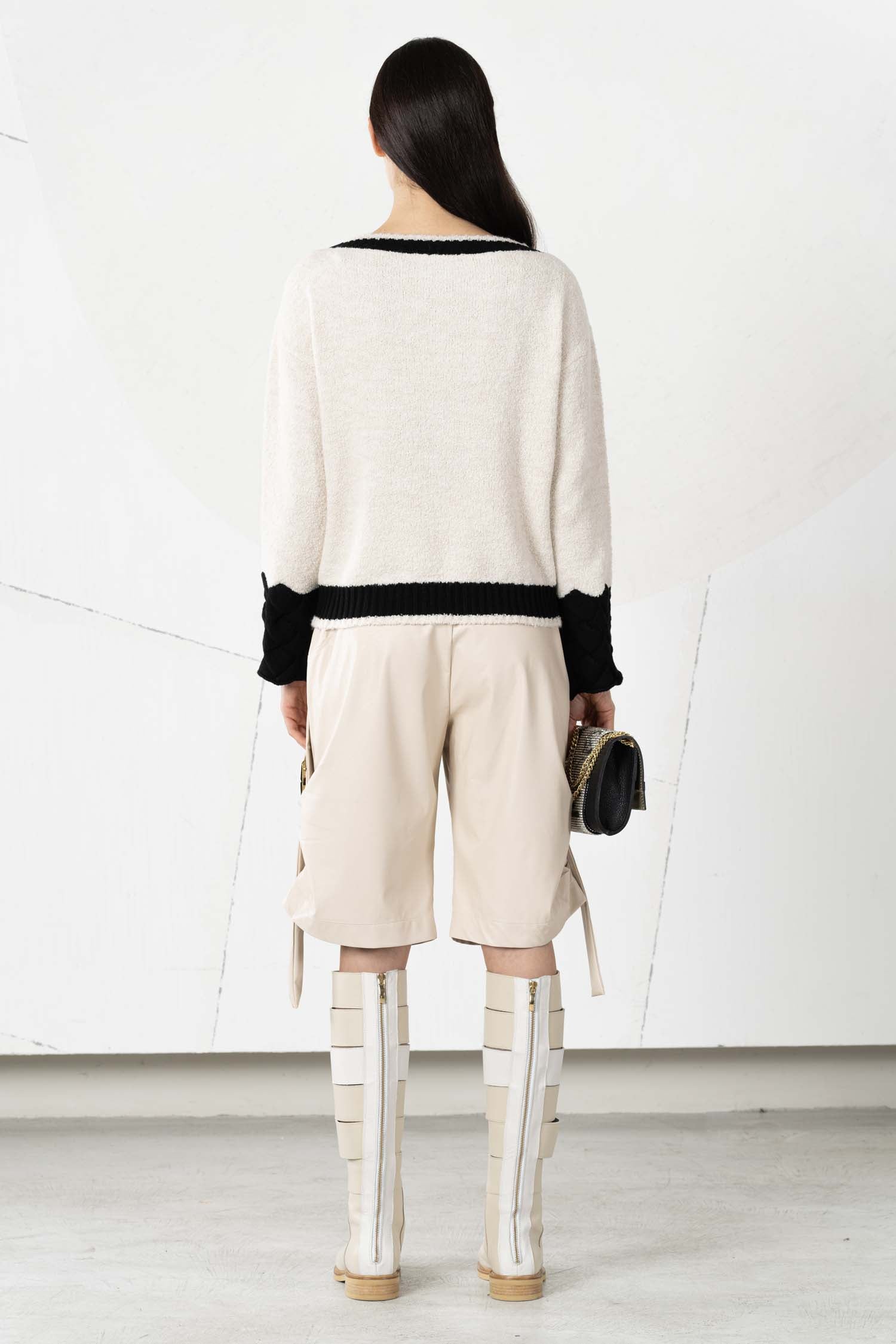 Confortable et chic à la fois ! Le pull en maille Raggio d'ELISA CAVALETTI se décline dans une jolie couleur crème et présente des détails noirs contrastants. Idéal pour les journées froides, il vous gardera au chaud avec style.