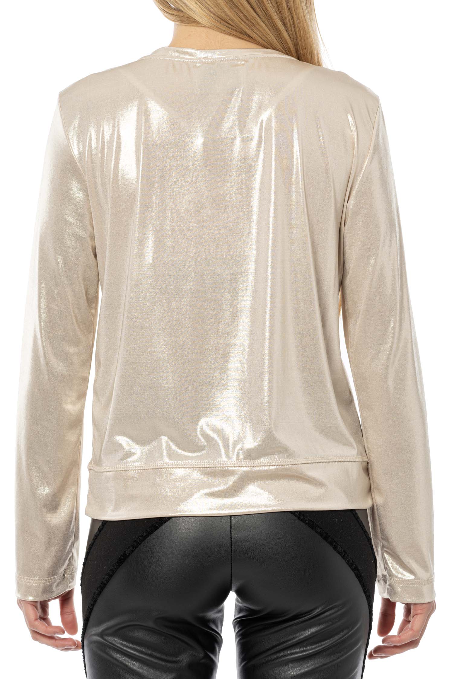 Découvrez le summum du style avec le sweat-shirt ELISA CAVALETTI Oro Nero. Ce haut à manches longues séduit par son éclat doré et son col en V, tandis que le motif noir apporte une touche d'élégance. Parfait pour un look tendance empreint de luxe !