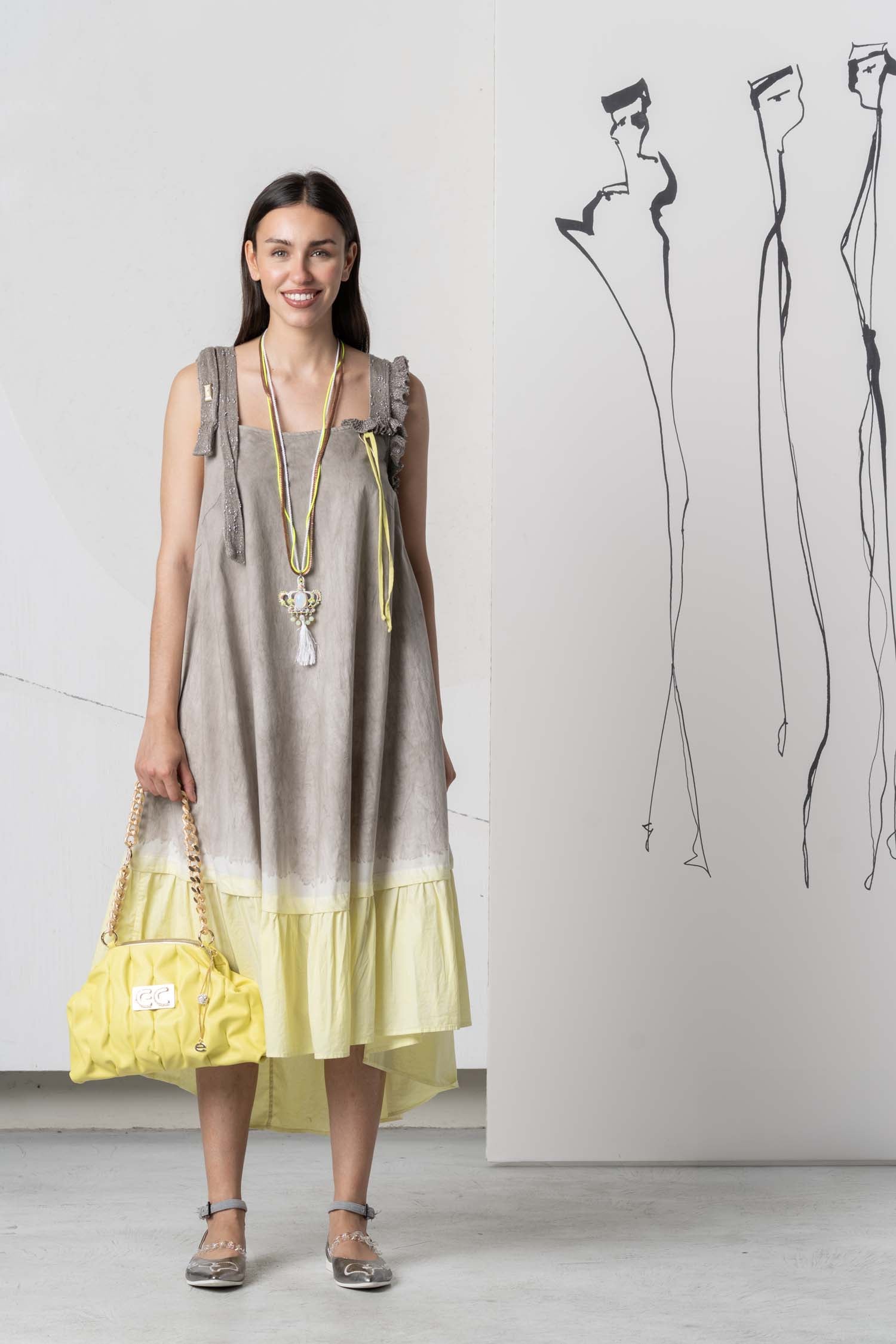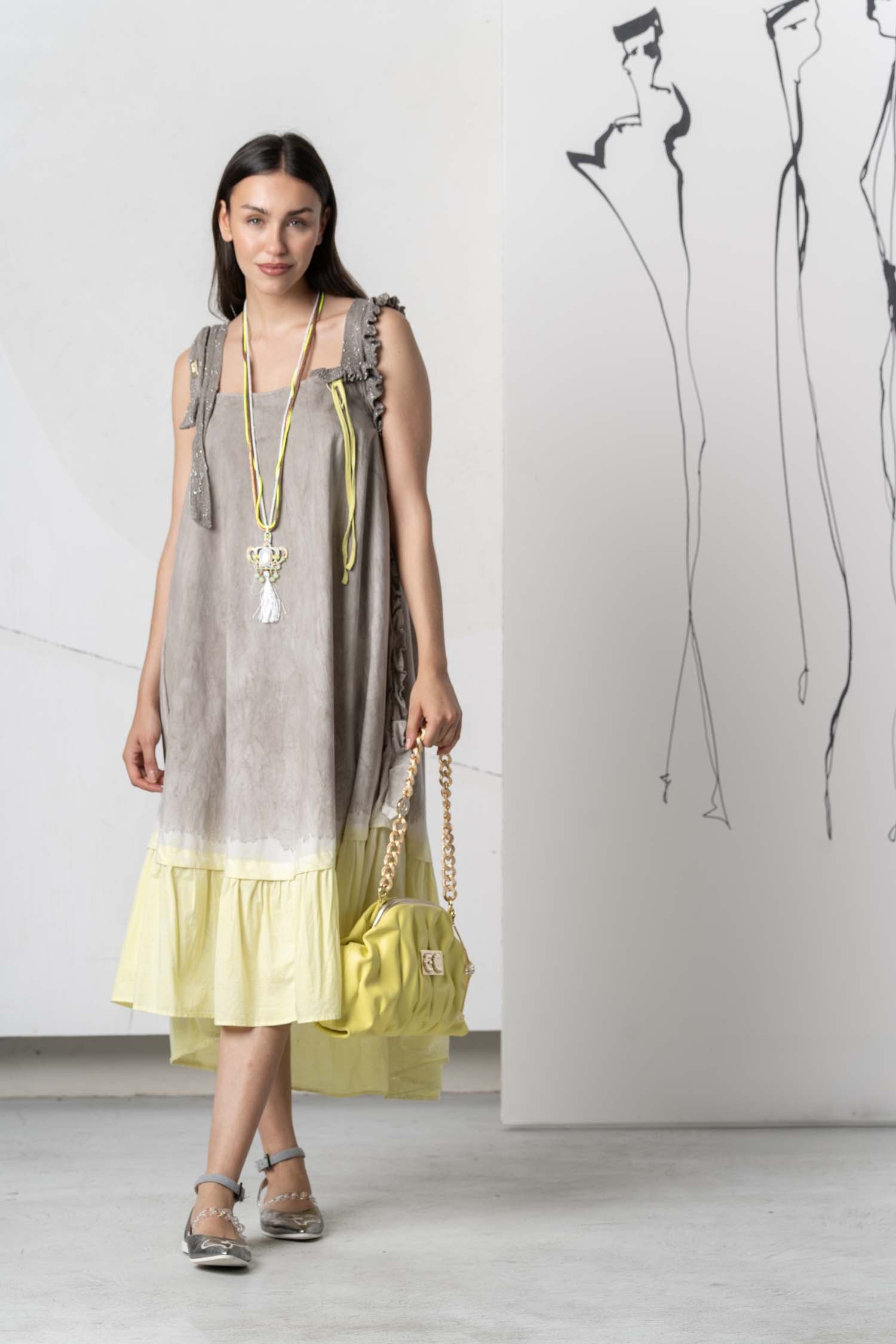 Ein überraschendes Design, das sowohl farblich als auch von der Form her auffällt. Das ELISA CAVALETTI Kleid Svago Applauso hat ein asymmetrisches Design in Gelb und Braun, aufgepeppt mit einem Farbspiel und aus angenehmem Baumwollstoff gefertigt. Ein schönes und einzigartiges Design.