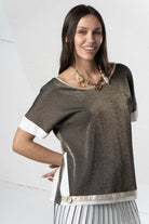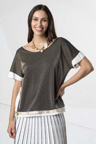 Begeistern Sie sich mit dem ELISA CAVALETTI T-Shirt Tiramisu in blau/grau meliert! Das kurzärmelige Shirt kommt mit goldfarbenen Applikationen und überzeugt durch seinen einzigartigen Stil. Seien Sie mit diesem Shirt stilsicher und sorgen Sie für einen Blickfang!
